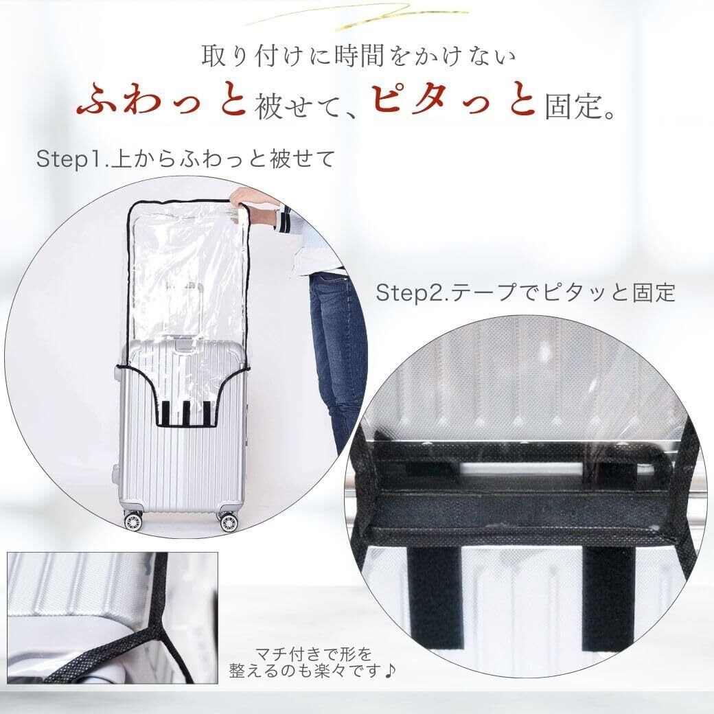 [Little Step] スーツケースカバー 透明 防水 厚手 おしゃれ ビニール 黒縁 大きめ 特大 無地 傷つけない 6サイズ展開 20インチ 22インチ 24インチ 26インチ 28インチ 30インチ スーツケース レインカバー 雨除けカバー OTOMO (22インチ)