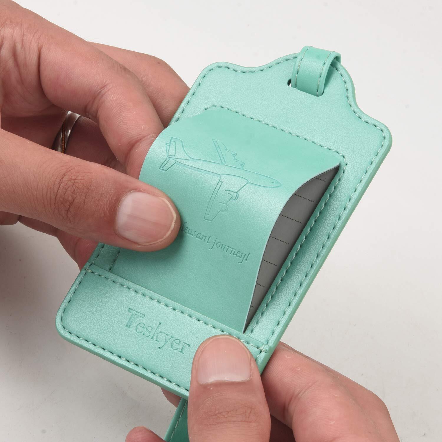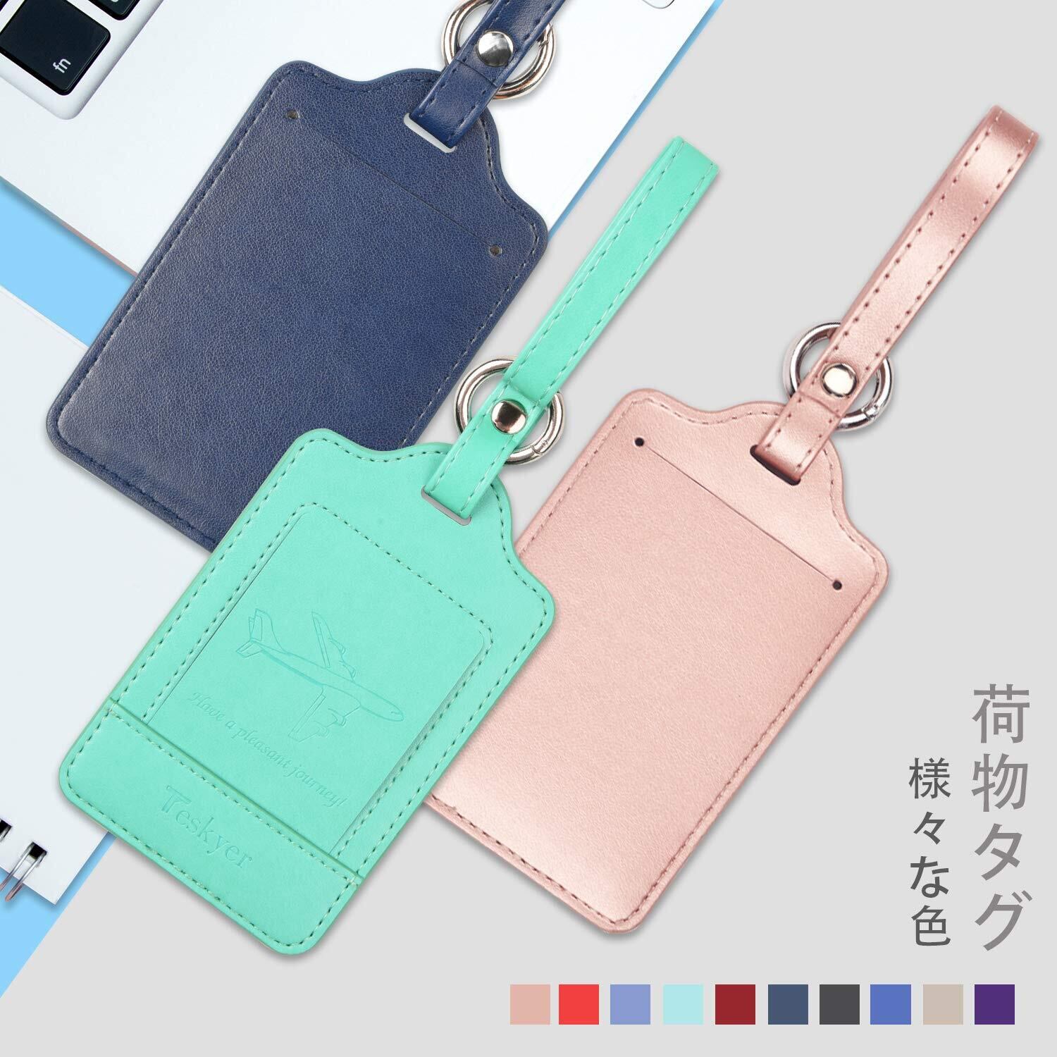 Teskyer 荷物タグ スーツケースタグ 出張用タグ ネームタグ 番号札 バッグ用ネームタグ レザー 旅行タグ トラベル用 旅行手荷物 ラベル 紛失防止 三枚入り(ネイビー+ローズゴールド+グリーン)