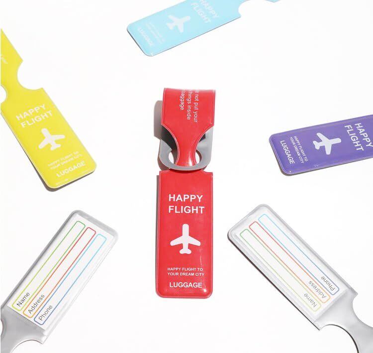 【荷物タグ】:名前、住所、電話の3つの最も重要な情報を含み、紛失や取り間違いを防止します。旅に安心を与えます。