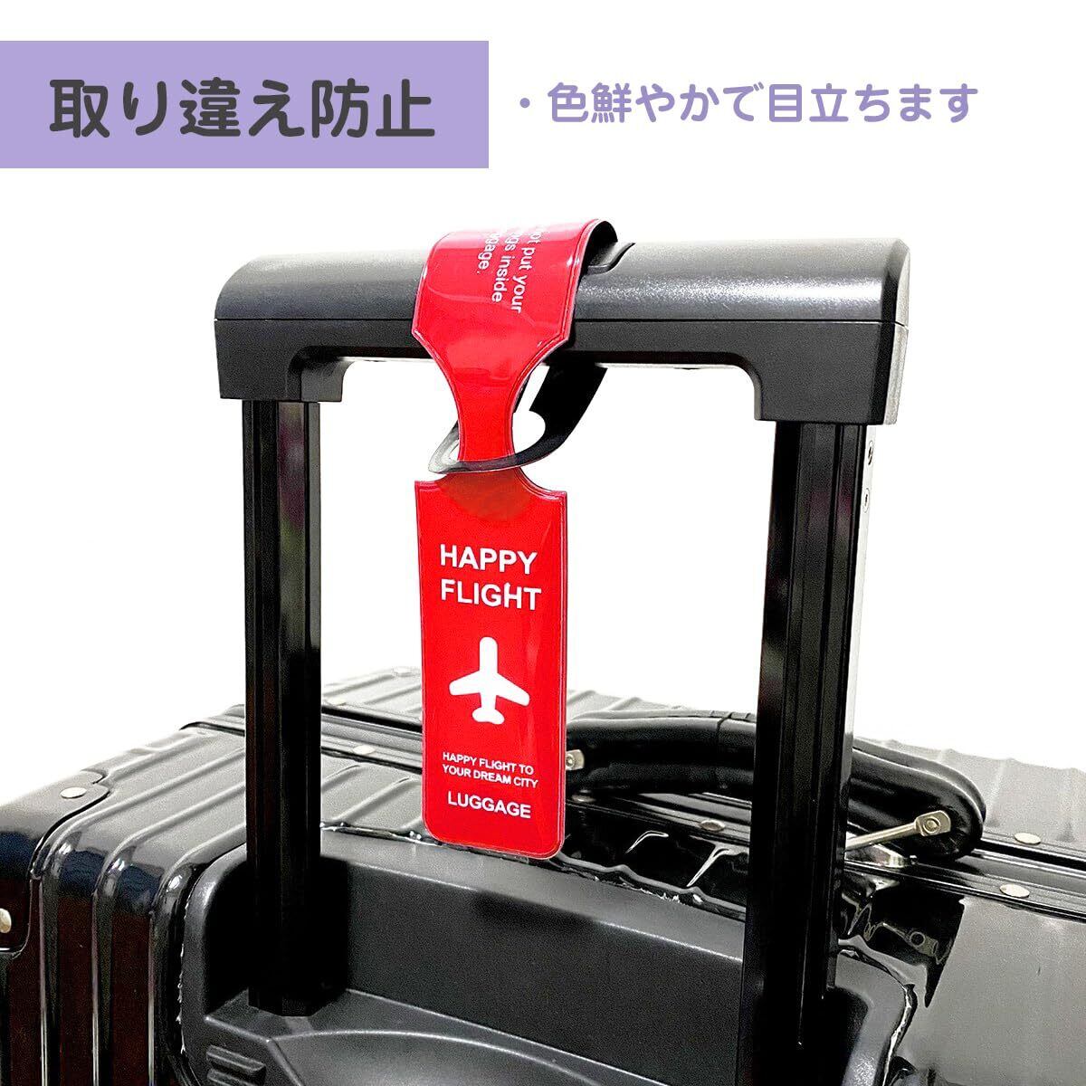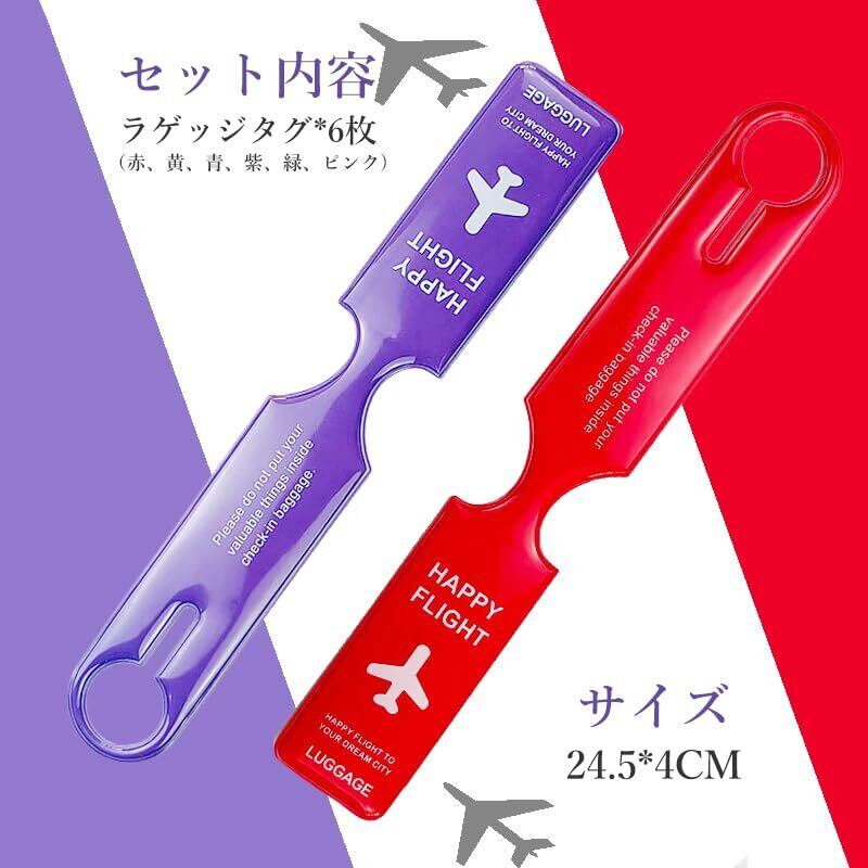 【セット内容】:ラゲッジタグ*6枚(赤、黄、青、紫、緑、ピンク各1枚)