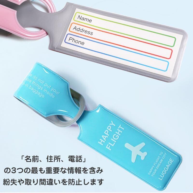 ラゲッジタグ 6枚入り 6色 スーツケース用 荷物ラベル 識別看板 紛失防止 取り違え防止 防水丈夫 軽量柔軟 旅行 出張 おしゃれ