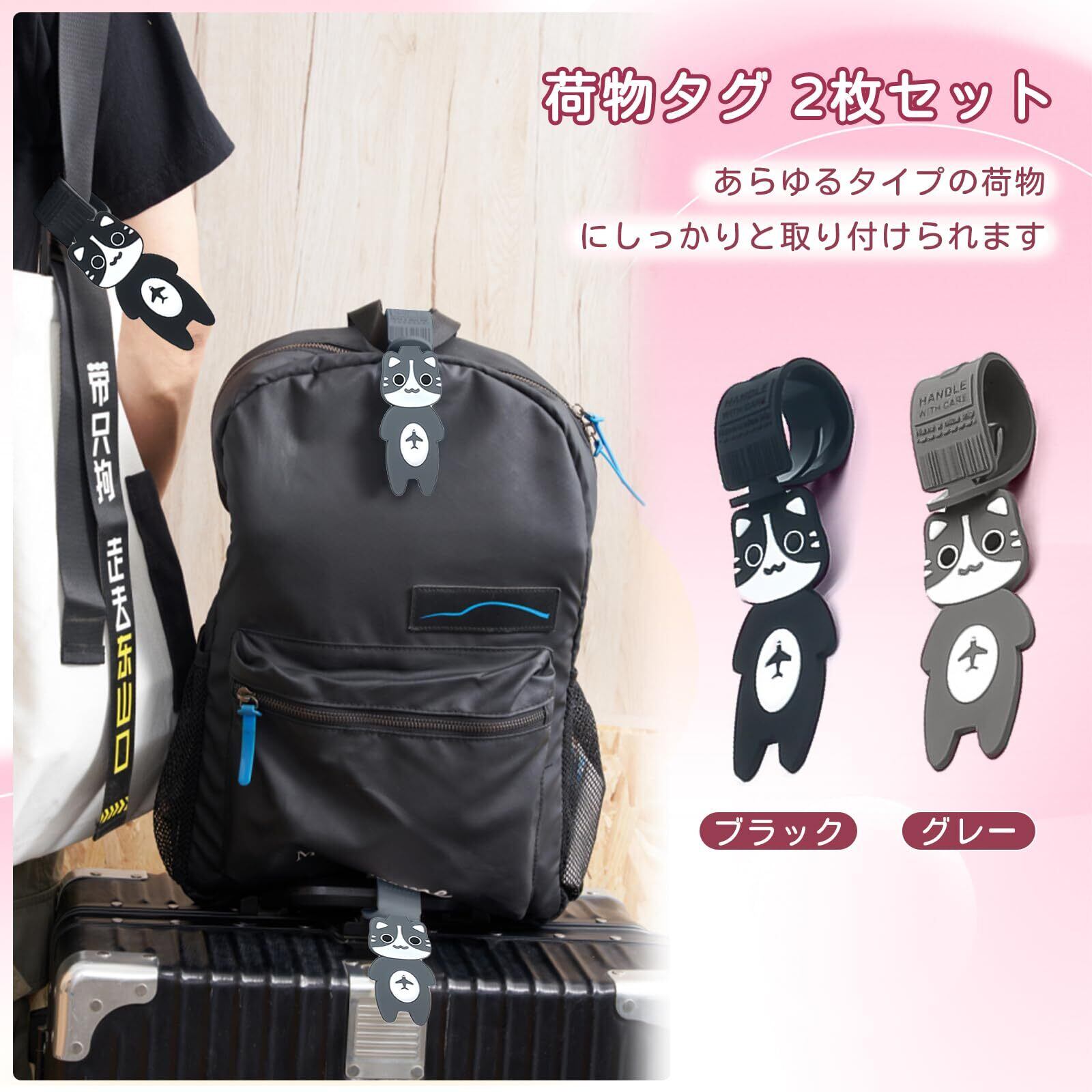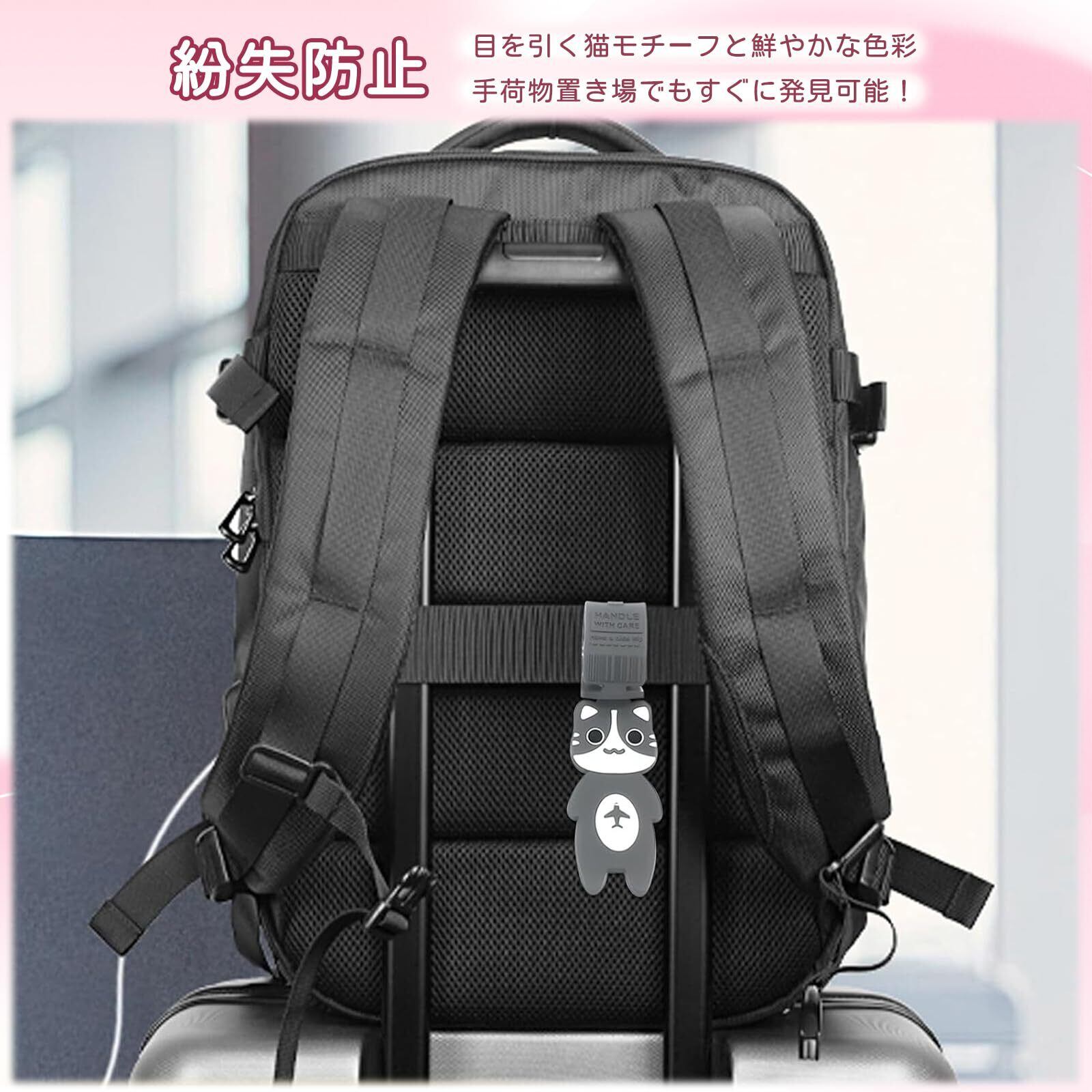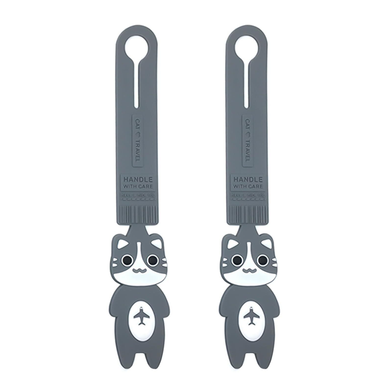 フリランス-ショプ 荷物タグ 2枚セット ラゲッジタグ スーツケース ネームタグ 目印 紛失防止 目を引く 識別 簡単装着 携帯便利 かわいい 猫 耐久 多用途 旅行 出張 飛行機 子供用 大人用 (グレー)