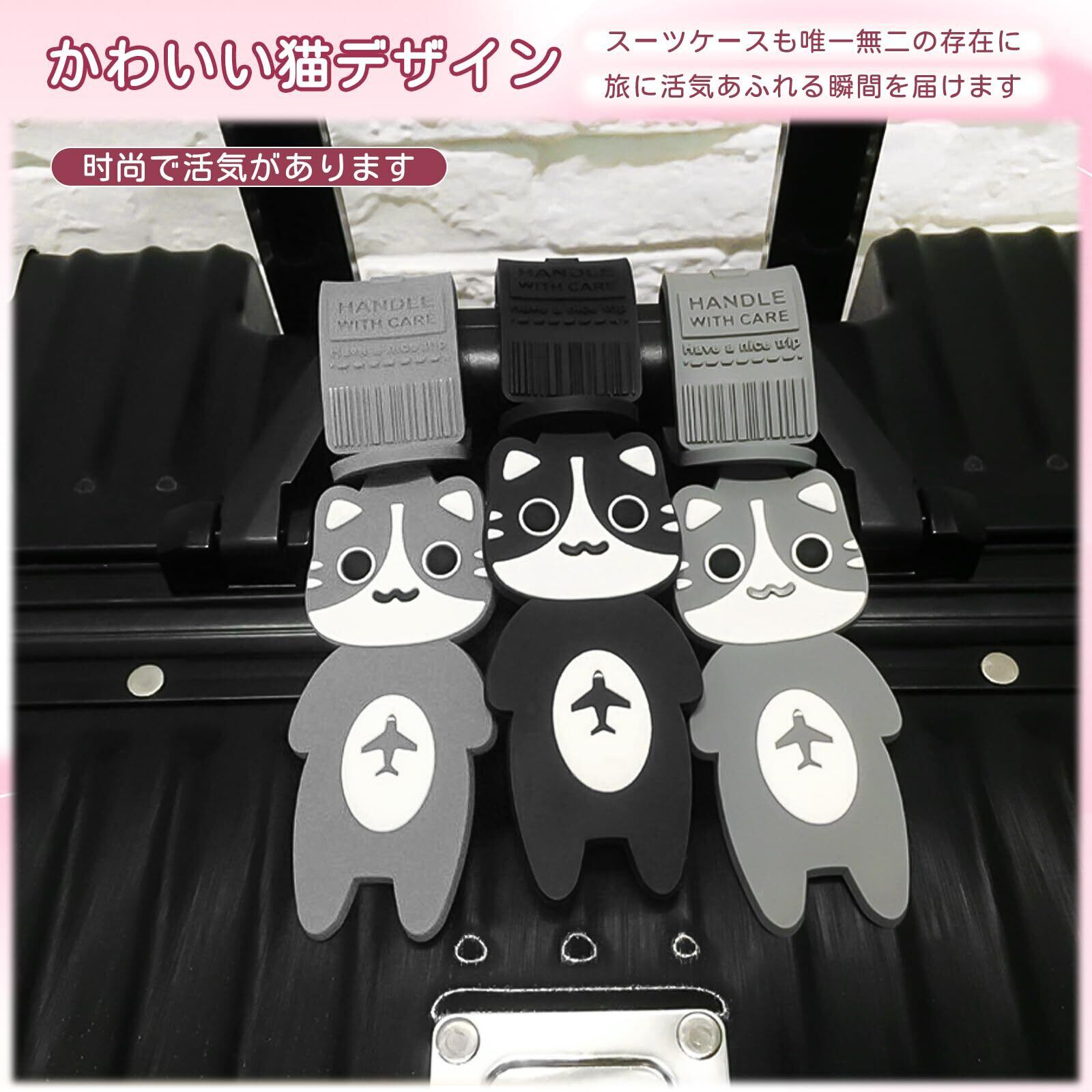 【特価商品】フリランス-ショプ 荷物タグ 2枚セット ラゲッジタグ スーツケース ネームタグ 目印 紛失防止 目を引く 識別 簡単装着 携帯便利 かわいい 猫 耐久 多用途 旅行 出張 飛行機 子供用 大人用 (グレー) | 無意味ステッカー