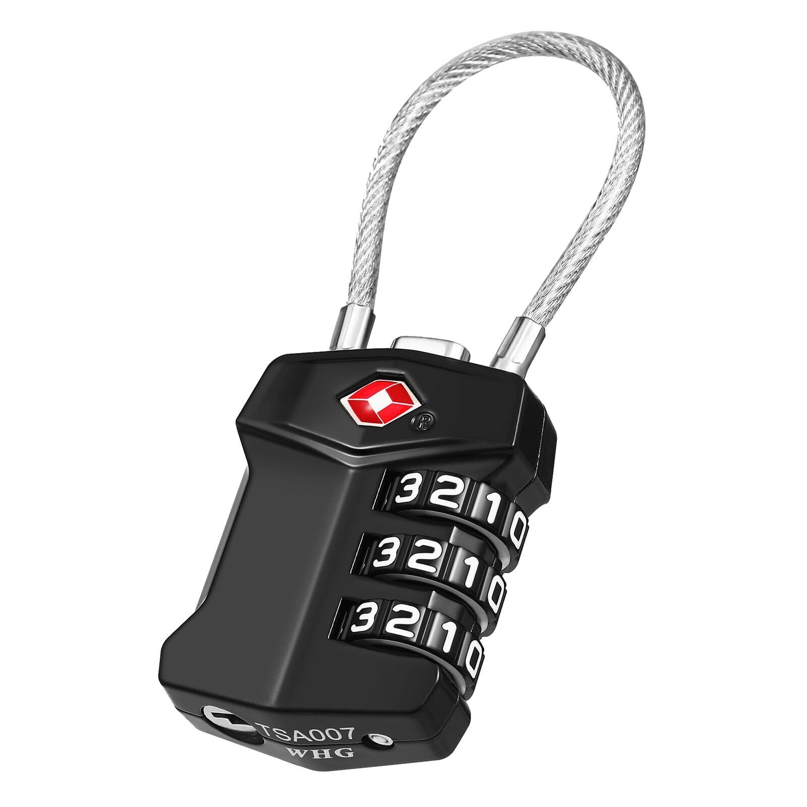 ZHEGE TSAロック 南京錠 ワイヤー スーツケース 鍵 3桁ナンバー ダイヤルロック 旅行用 セキュリティ 盗難防止 (ブラック)