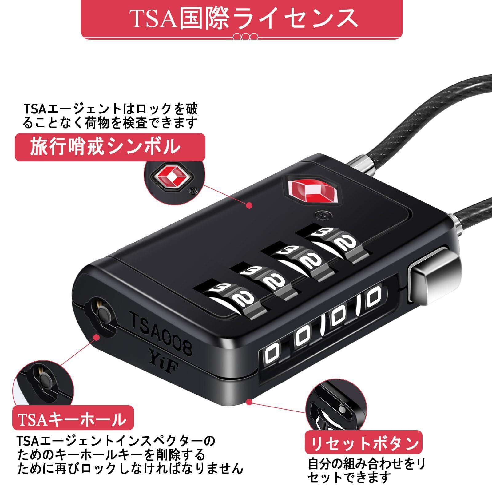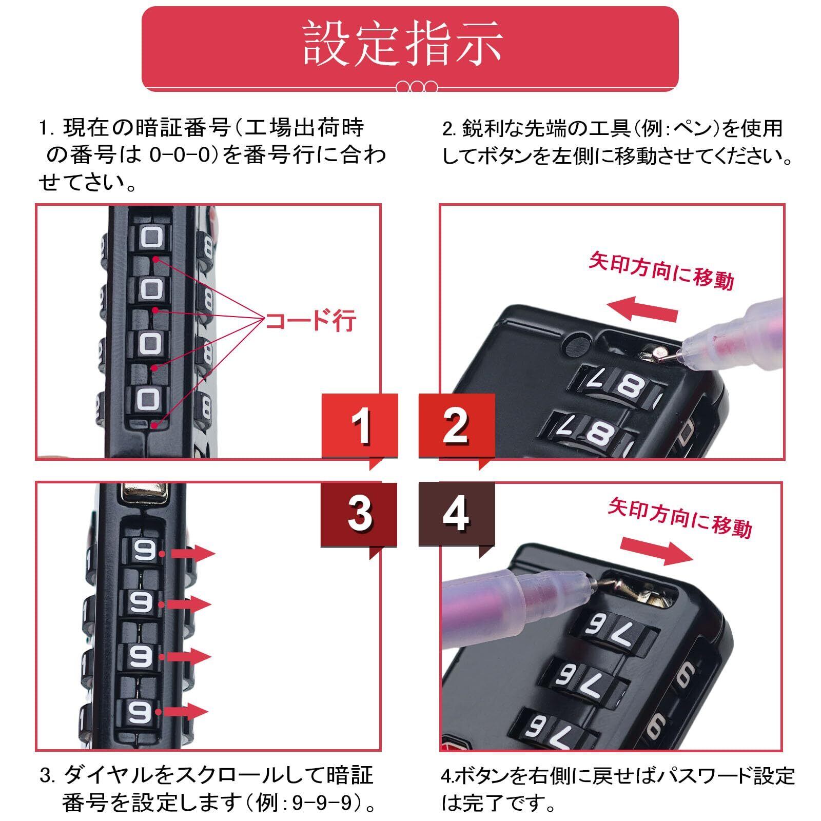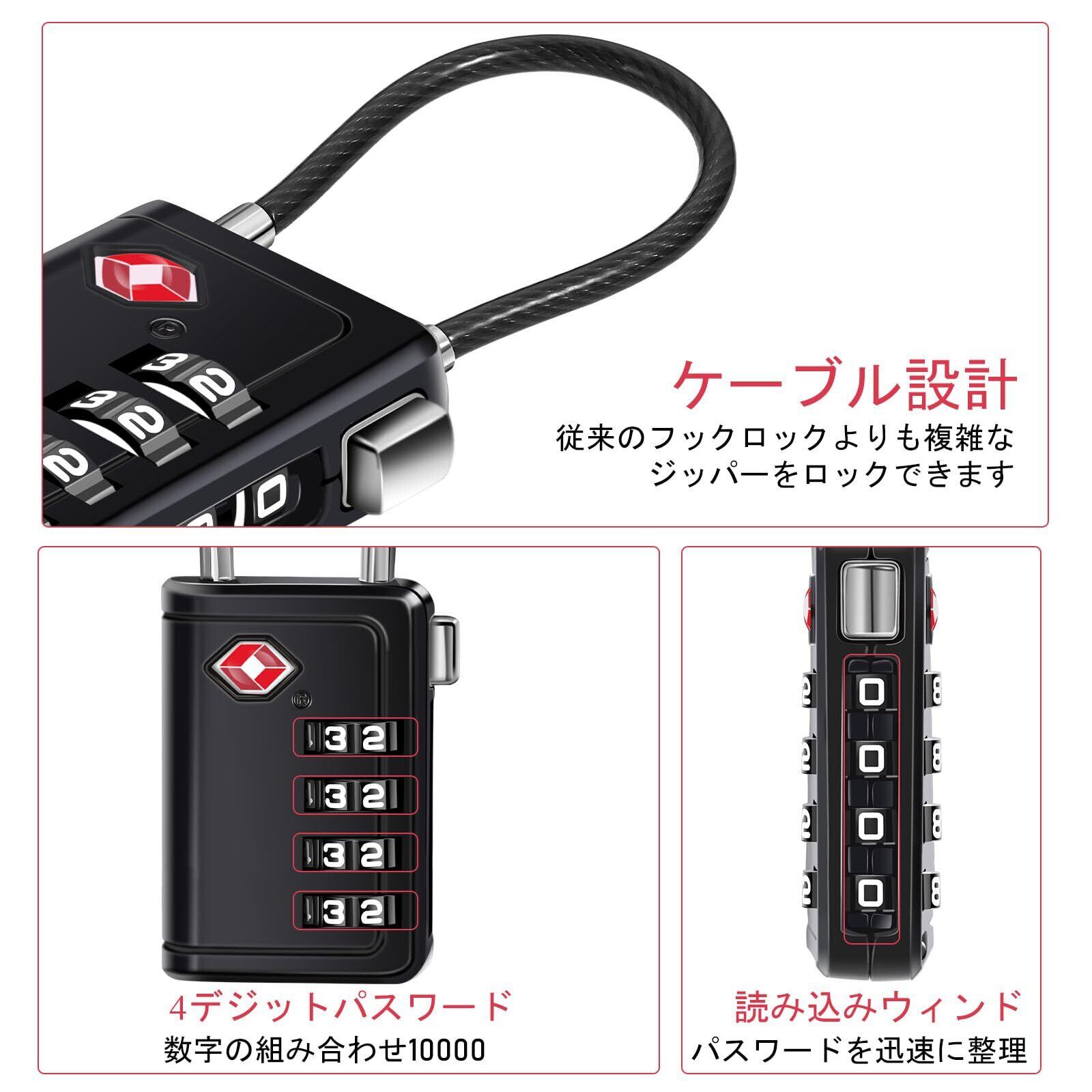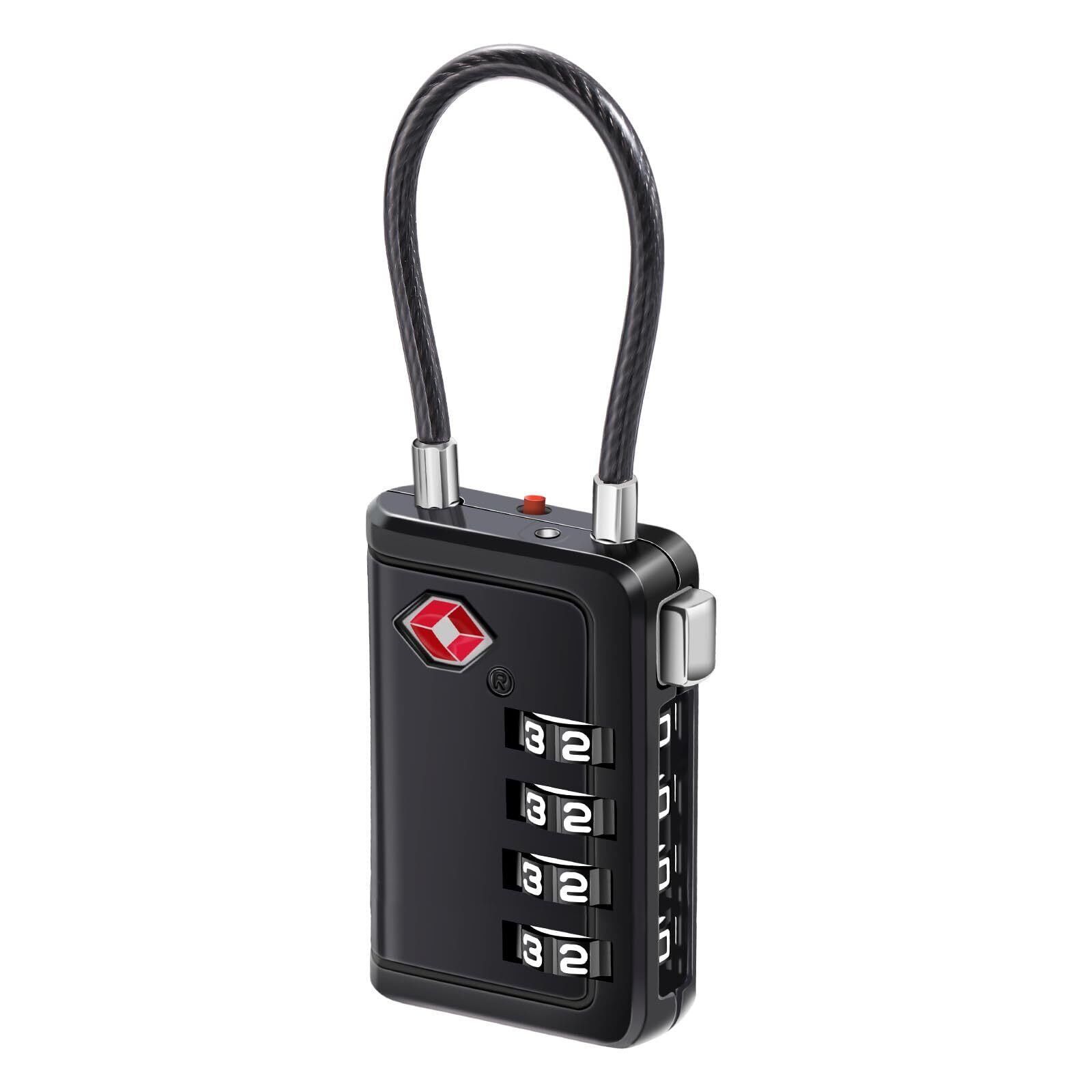 NAGE TSAロック 南京錠 4桁 キャリーケース 鍵 暗証番号 海外旅行用 スーツケース 荷物 バッグ用ロック 防犯 日本語説明書 (ブラック,1個)