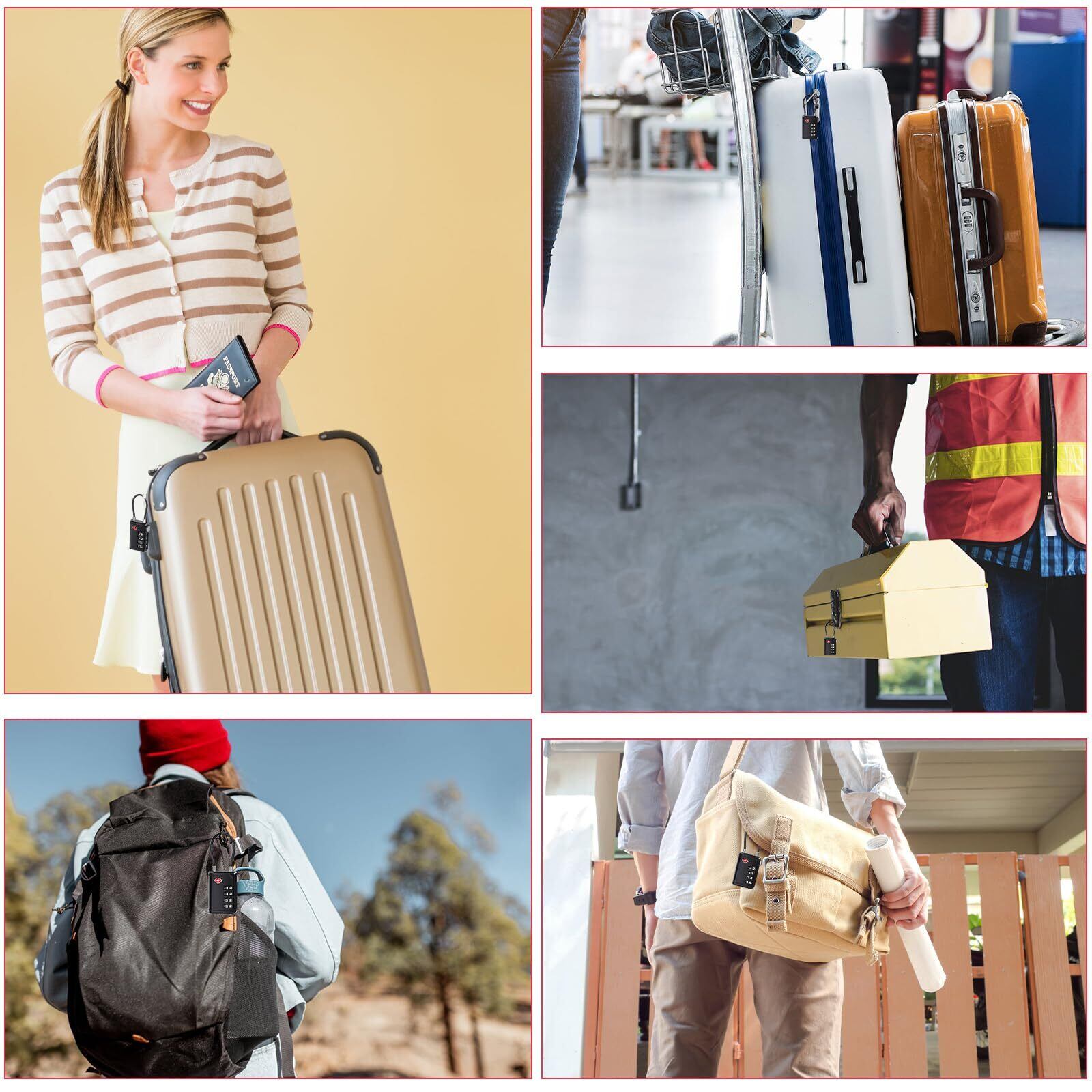 【手荷物が開いているかどうかを知る】TSA職員が手荷物をチェックする際、内蔵の赤いインジケーターがポップアップして警告します。コードを入力するだけでリセットできます。この機能によりセキュリティが向上し、TSA認定ロックは旅行に理想的なものとなり、あなたの持ち物を確実に保護します