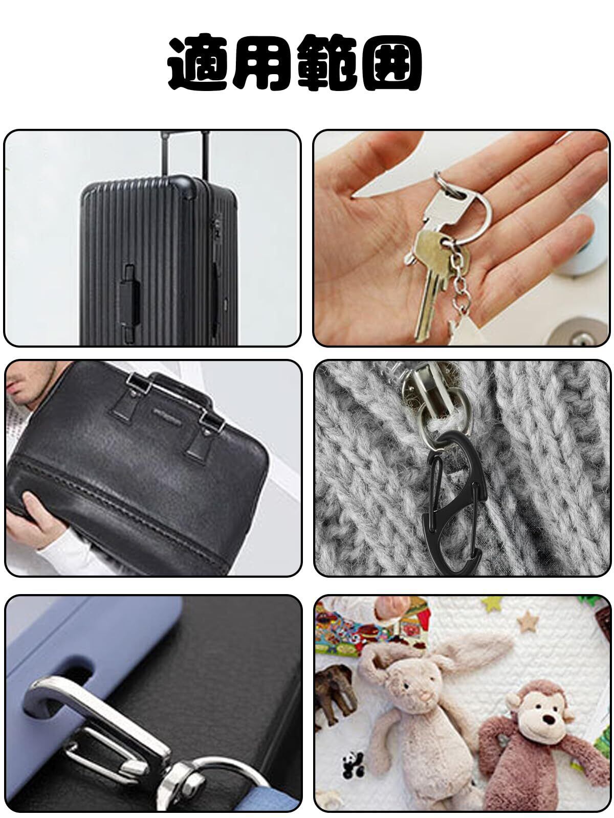 【幅広い用途】ジッパーの引き手交換、旅行バッグのロック、アウトドアでのテント固定、キーホルダーや小物の取り付けなど、多用途に使えます。海外旅行 スリ対策 グッズとしても便利なアイテムです。