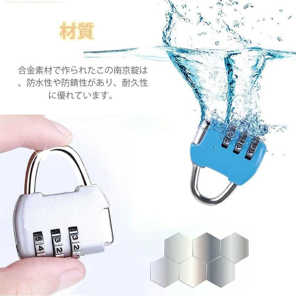 【材質】合金素材で作られたこの南京錠は、防水性や防錆性があり、耐久性に優れています。