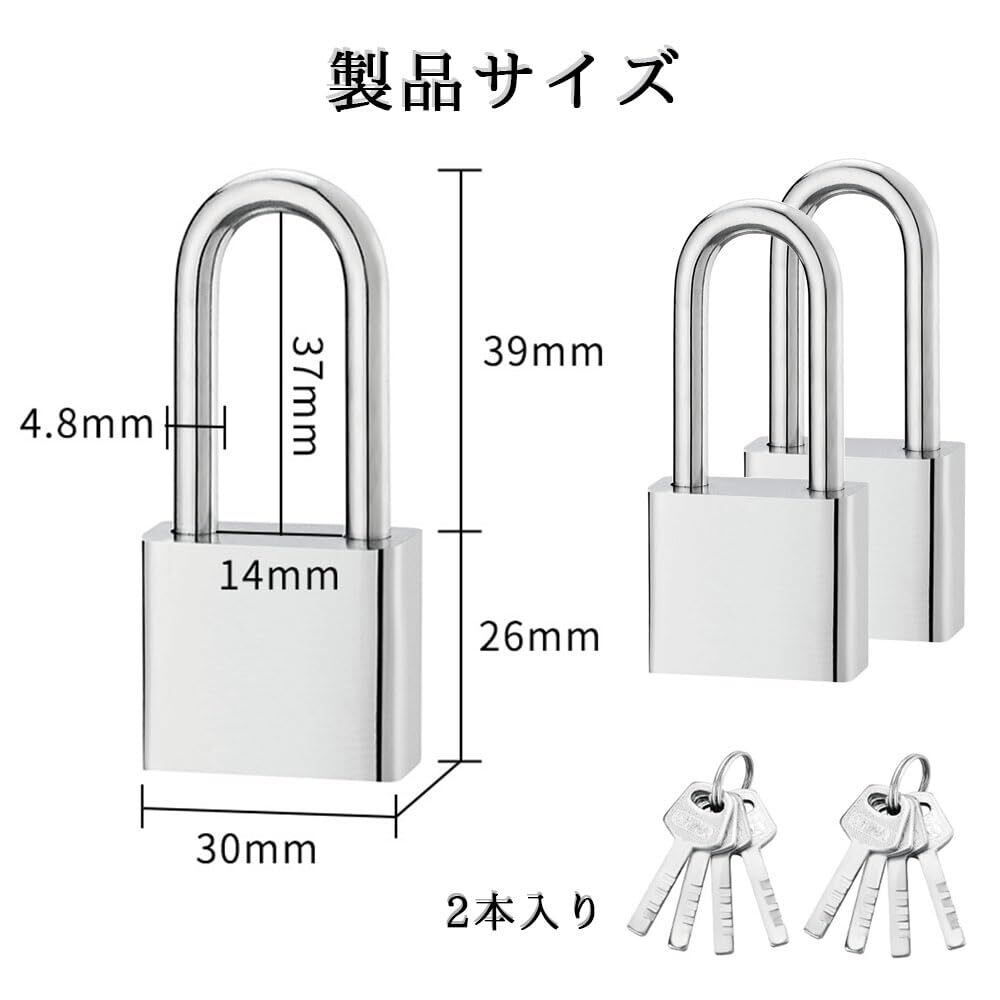 3.パッケージ内容:掛錠2個、鍵8本、本体寸法:30×65mm(幅×高さ)、ロックピン直径:4.8mm、ロックピン内側寸法:14×37mm(幅×高さ)、色:シルバー、材質:鉄。