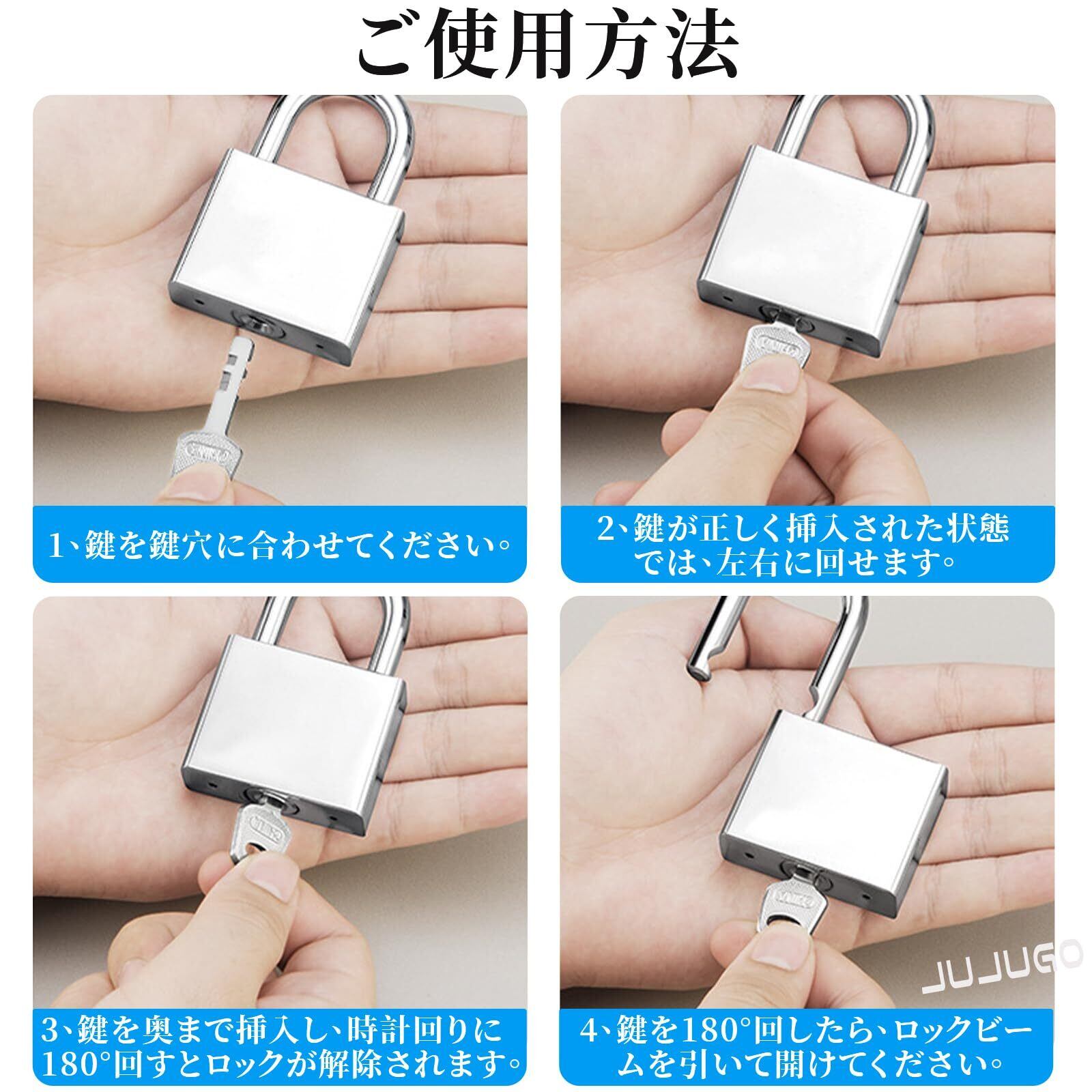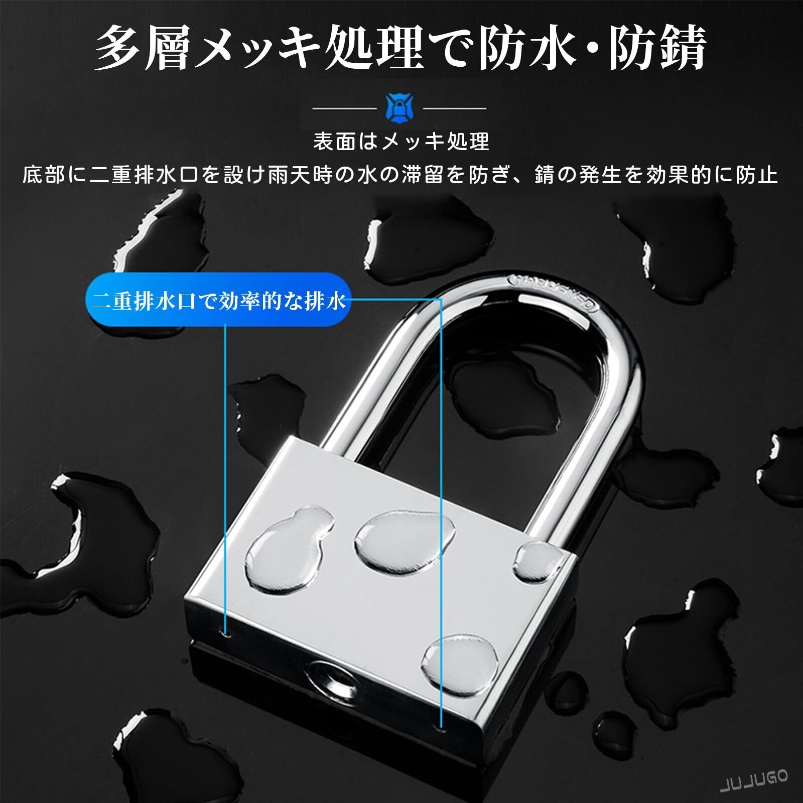 【在庫セール】JUJUGO 南京錠 小型 鍵付き 2個セット シルバー 防錆加工 防水 耐久設計 鍵8本付属 (ロングシャックルタイプ) 自宅 工場 アウトドア用 セキュリティロック | 無意味ステッカー