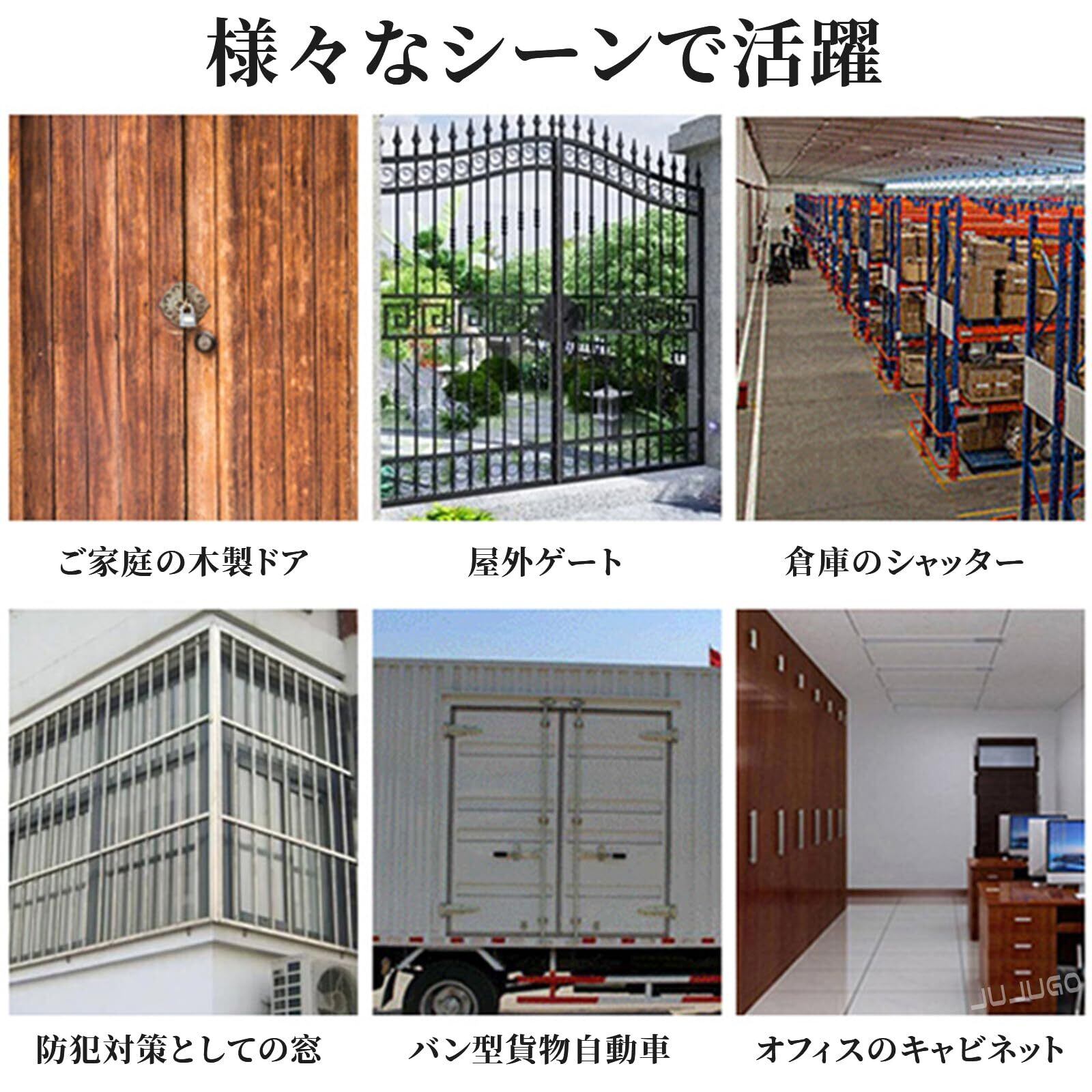 【コンパクト設計で多用途に活躍】小型サイズ(30×65mm)ながら頑丈な鋼材製。バッグ・工具箱・収納キャビネットから工場・ガレージまで、幅広いシーンで使えるロングシャックル設計。鍵8本付属で共用にも便利。
