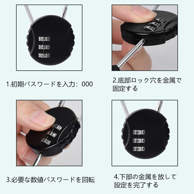 LIKENNY 2個セット 南京錠 鍵 盗難防止 ダイヤル式ワイヤーロック 暗証番号 ダイヤル式ロック 軽量 耐久性 旅行用 安全で盗難防止 アウトドア オフィス