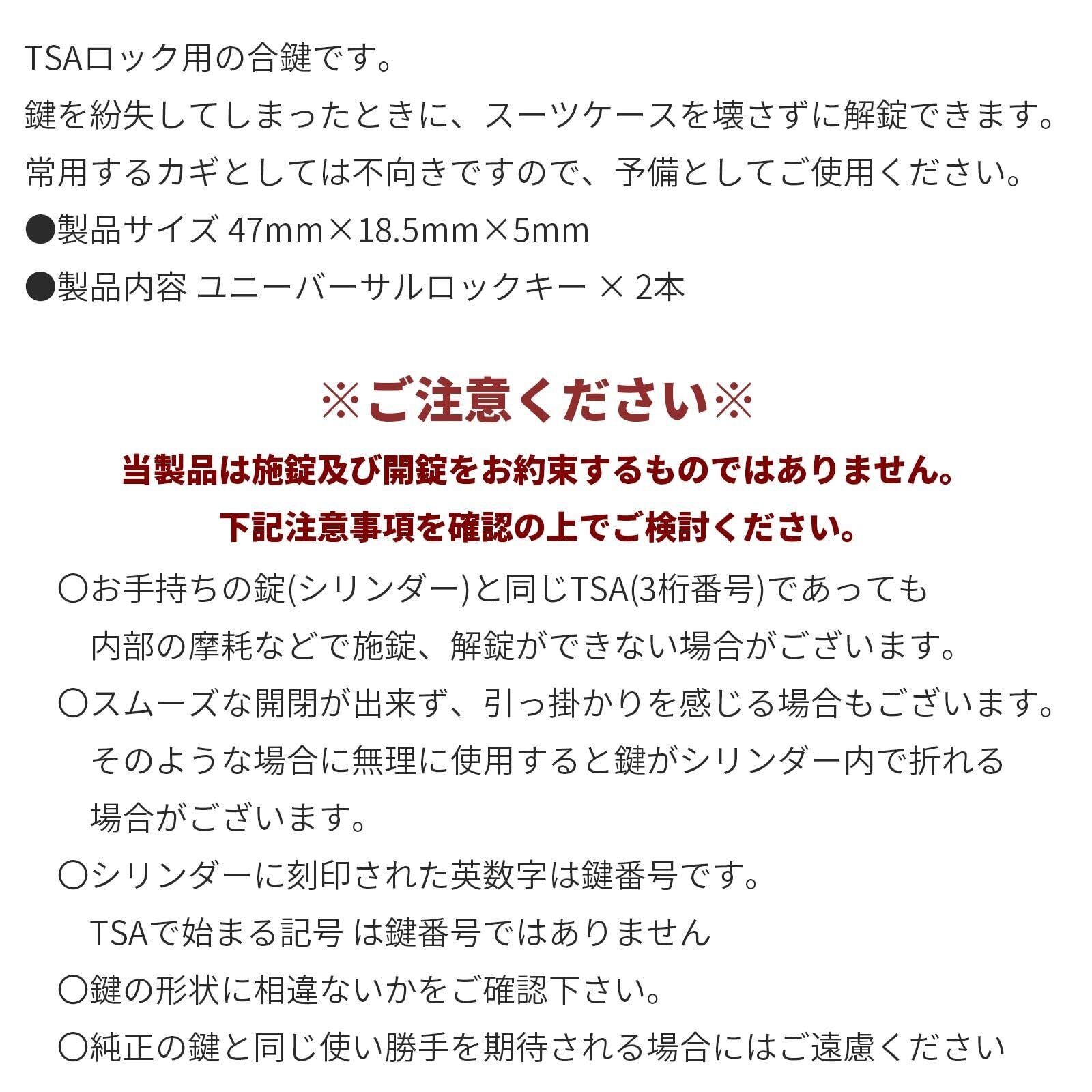●製品内容 TSA007ユニーバーサルロックキー×2本●保証期間 お届け日より1ヶ月 国内発送