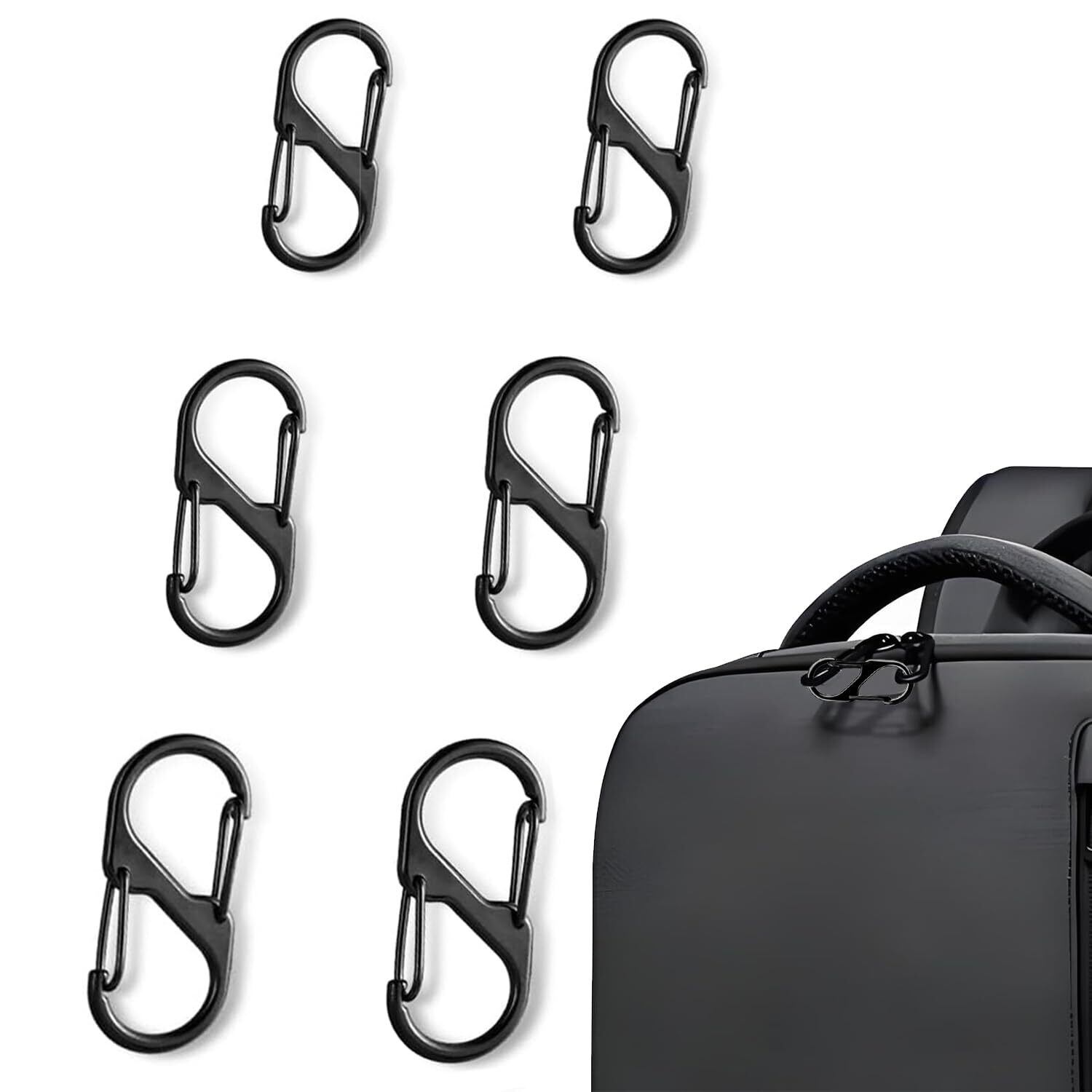 LIKENNY ジッパークリップ 盗難防止 ジッパープル交換 取り外し可能ジッパーコネクター ダブルオープニング バックパックジッパーク ロッファスナー 引き手 キーホルダー 海外 旅行 空港 検査 防犯グッズ (ブラック(6個))