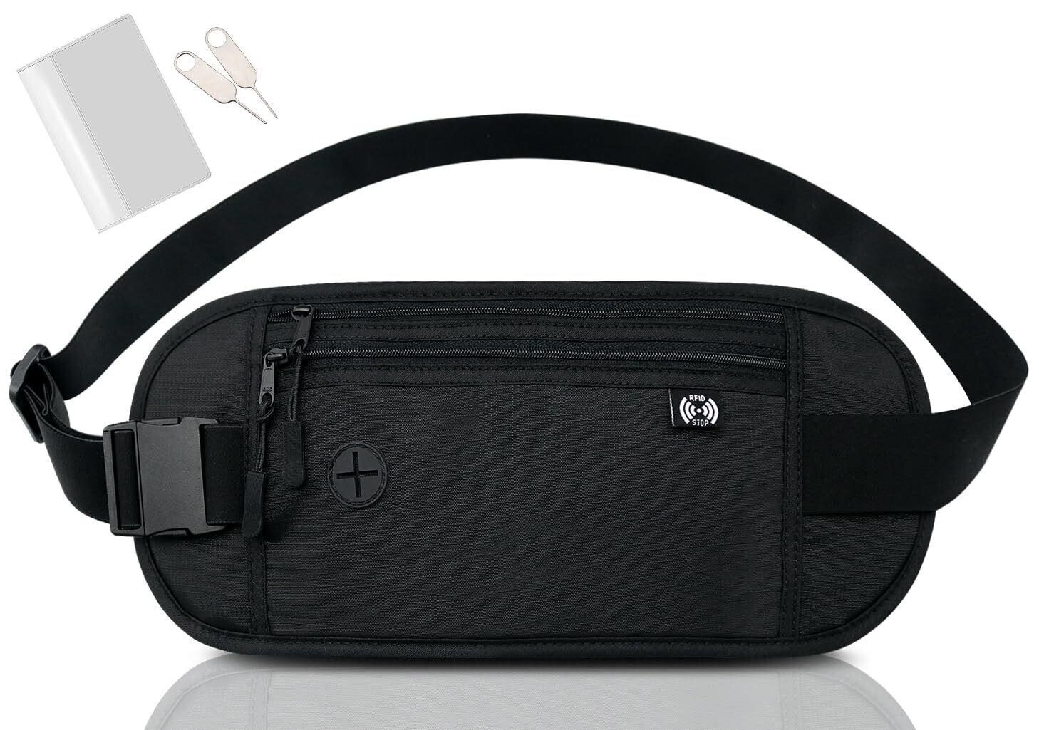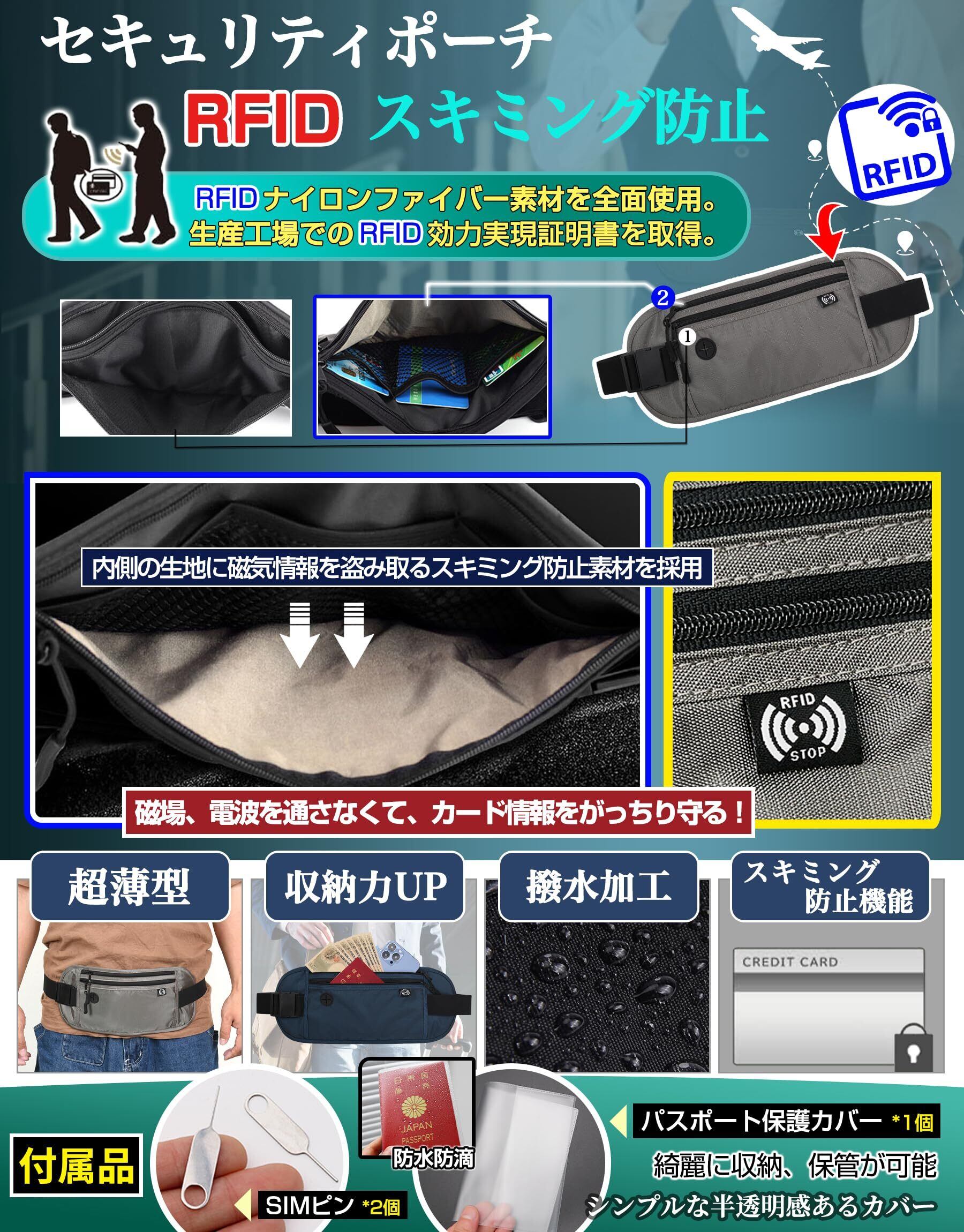 GOKEI セキュリティポーチ パスポートケース 海外旅行 パスポートカバー バッグ スキミング防止 トラベル パスポート入れ 旅行用品 スリ防止 腹巻 防犯 (ブラック)