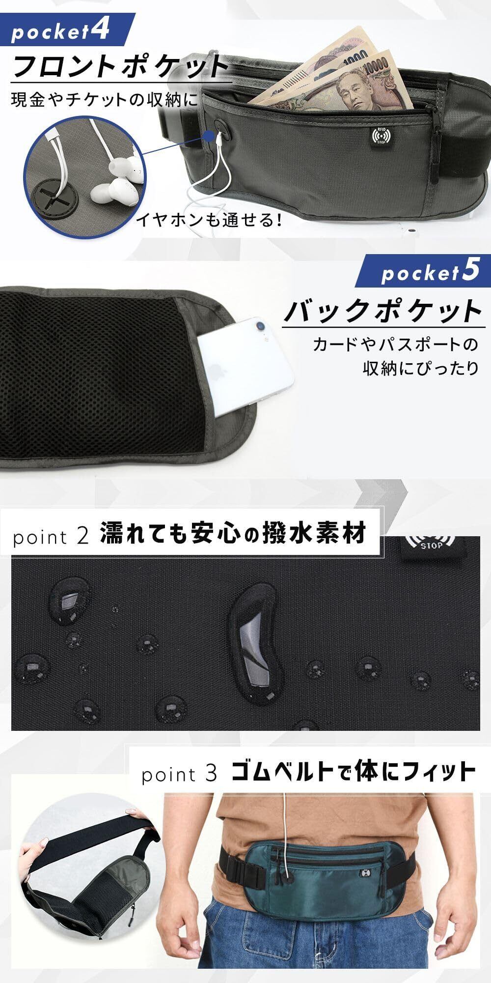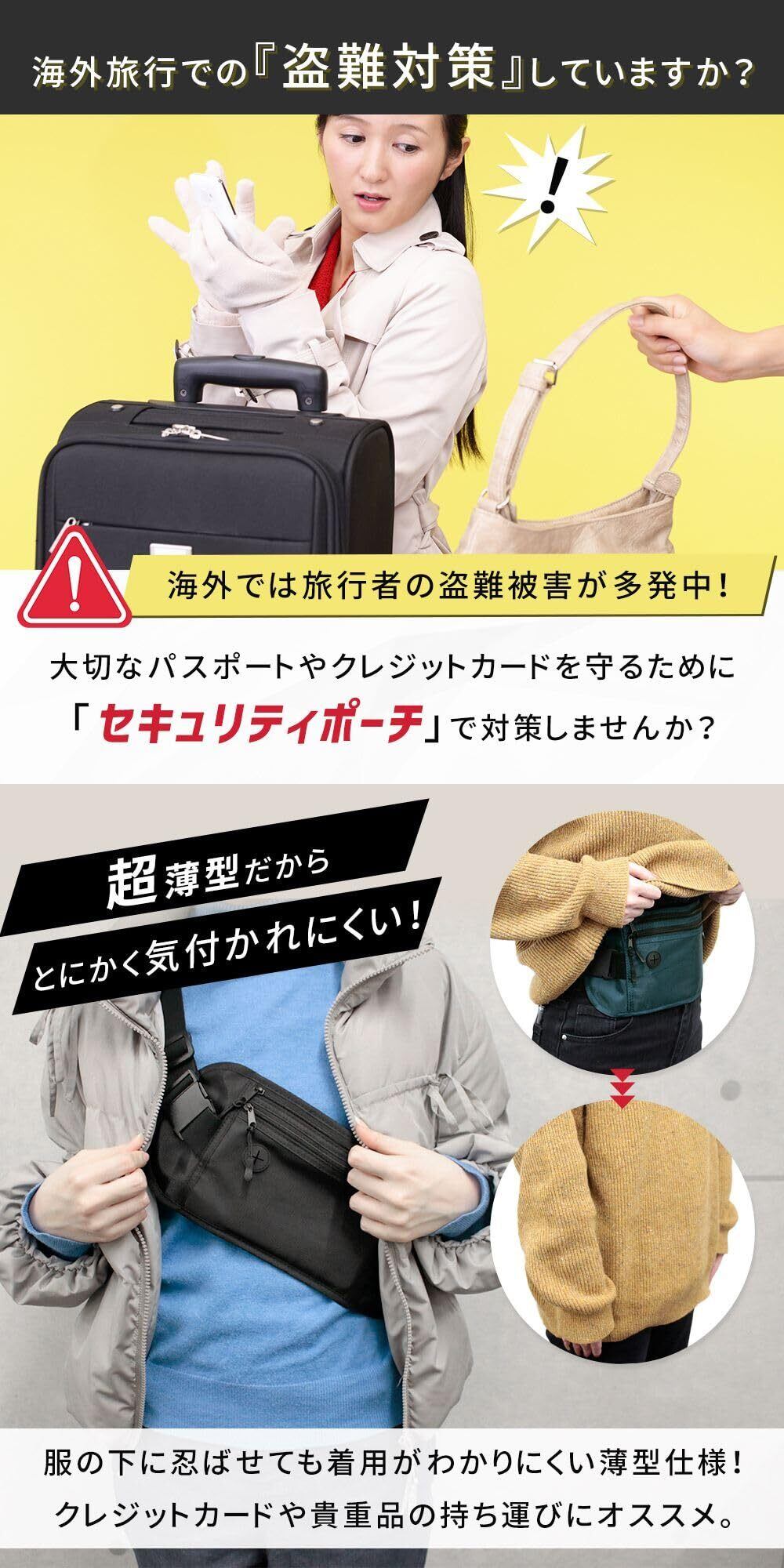 【貴重品をしっかり守るセキュリティポーチ】スリや盗難対策に最適な薄型ポーチ。服の下に隠して持ち歩けるデザインで、安全に貴重品を収納。