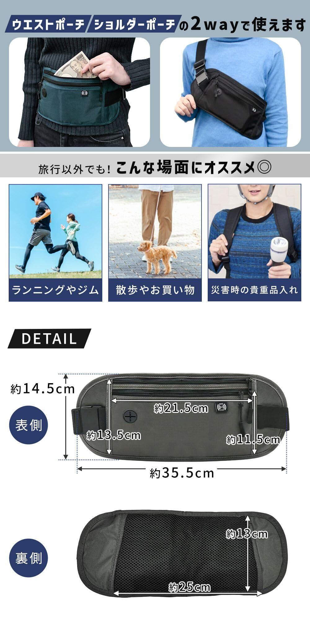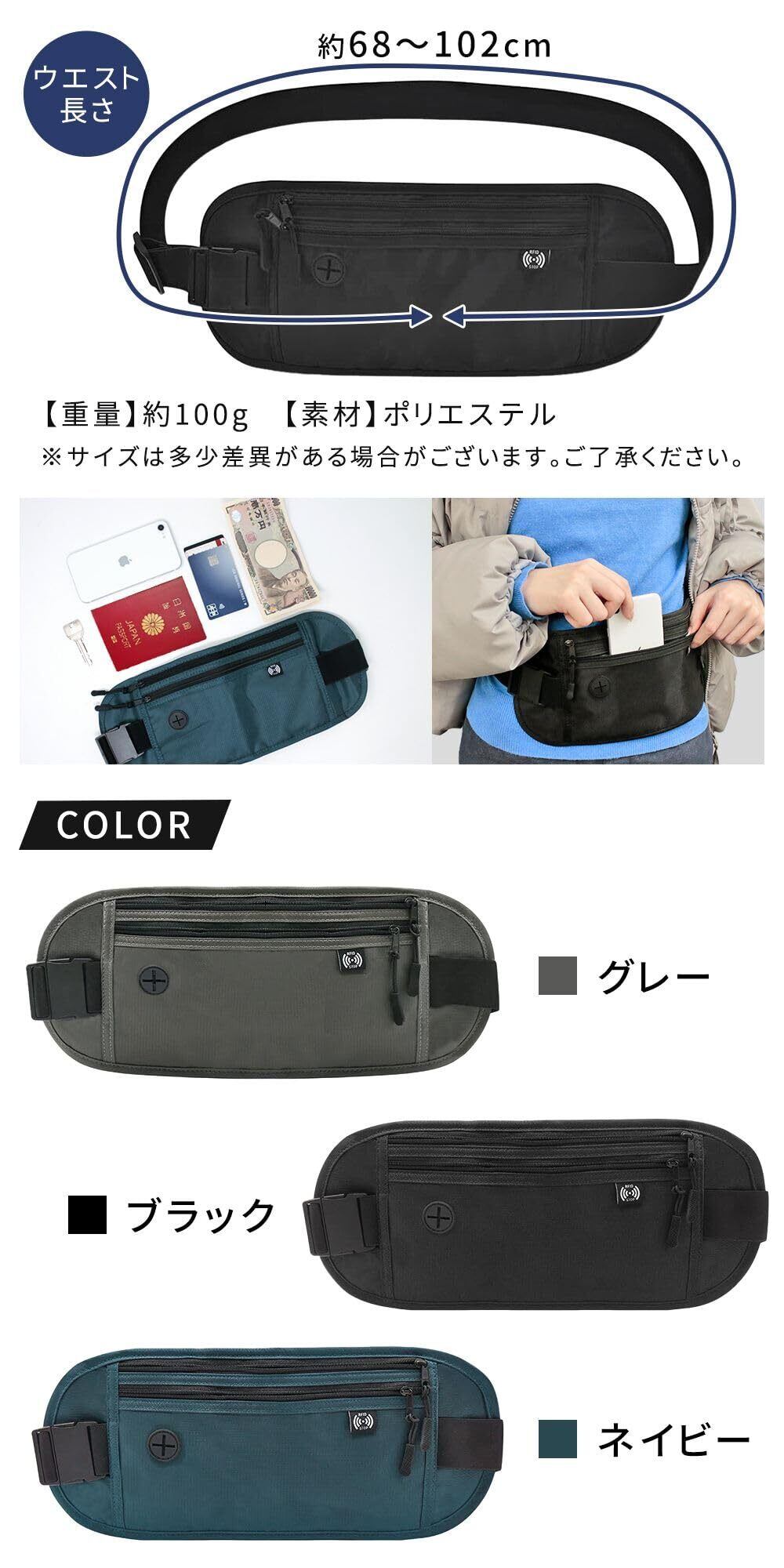 [ミタス] セキュリティポーチ 防犯グッズ 女性 男性 薄型 首下げ 腹巻き 盗難防止 海外旅行 貴重品 クレジットカード