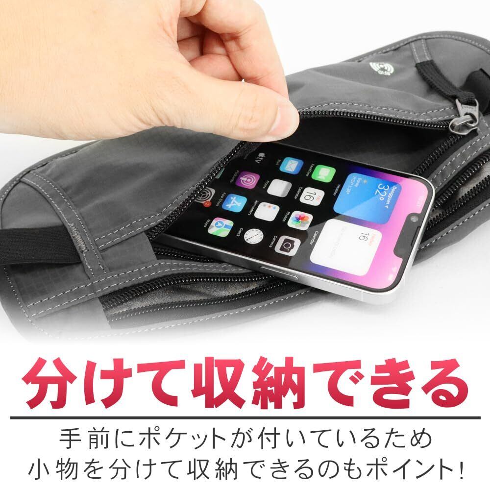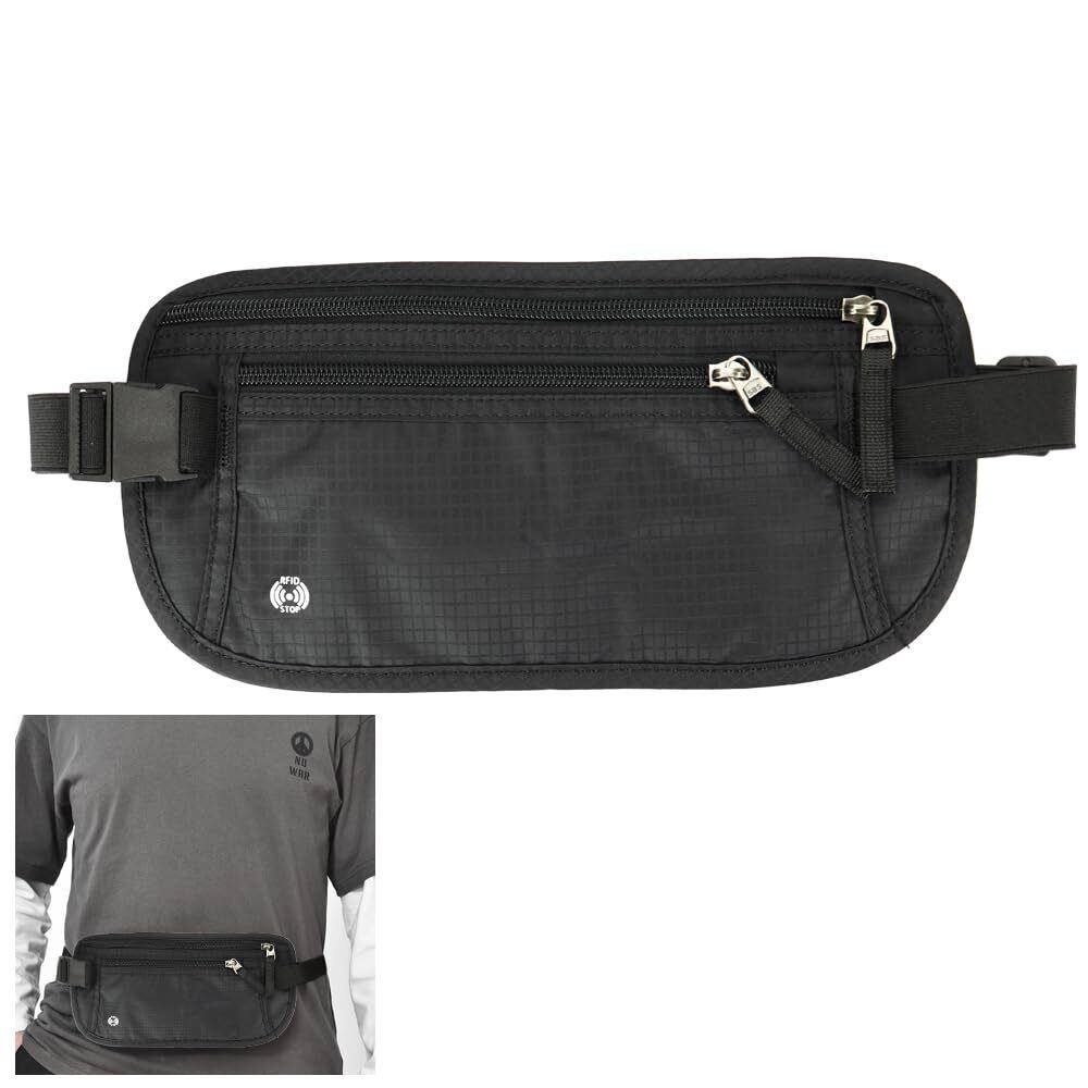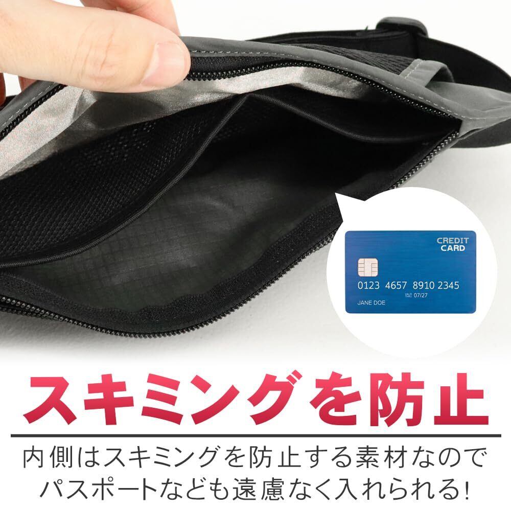 セキュリティポーチ ウエストポーチ スキミング防止 防犯 スリ対策 貴重品 (ブラック)