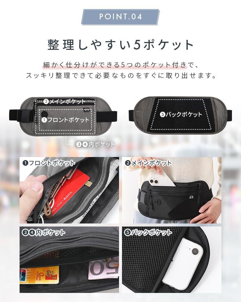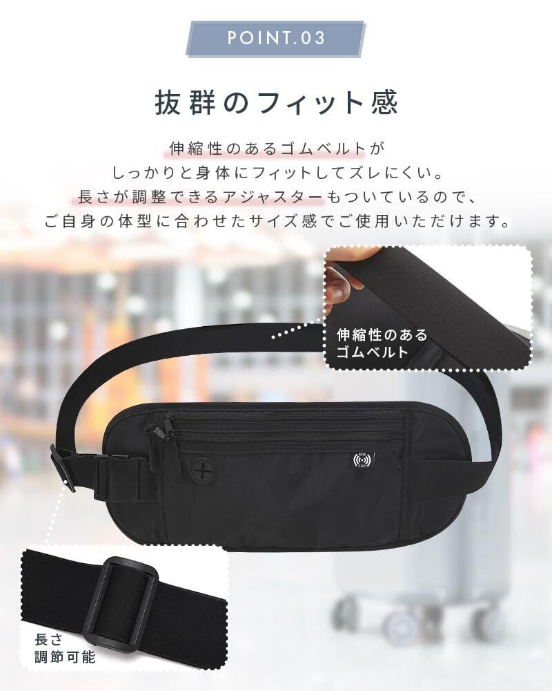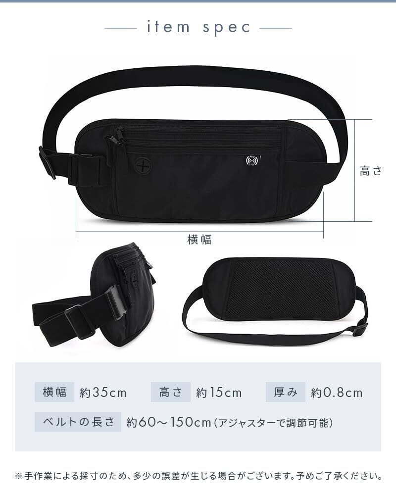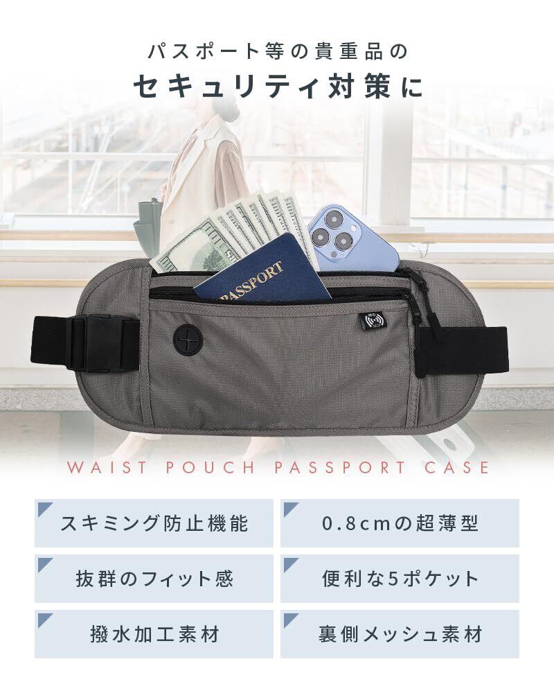 セキュリティポーチ 海外旅行 スリ対策 防犯 スキミング防止 シークレットポーチ 薄型 セキュリティ パスポート入れ ウエストポーチ パスポート 貴重品ポーチ 多機能 軽量 旅行 便利(ブラック)