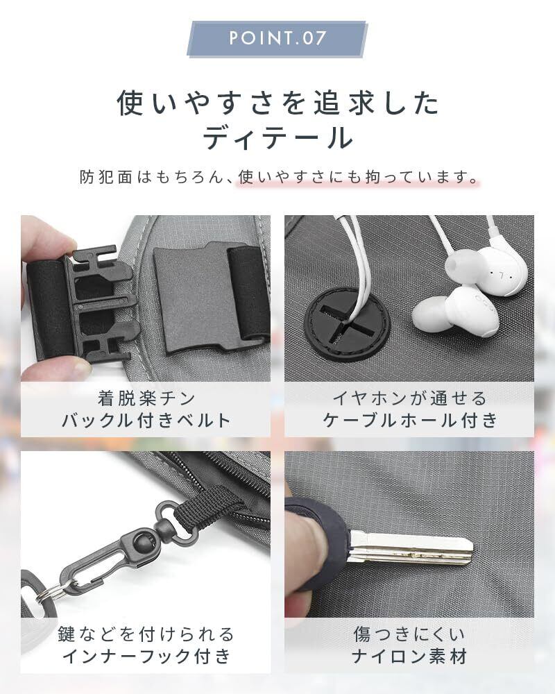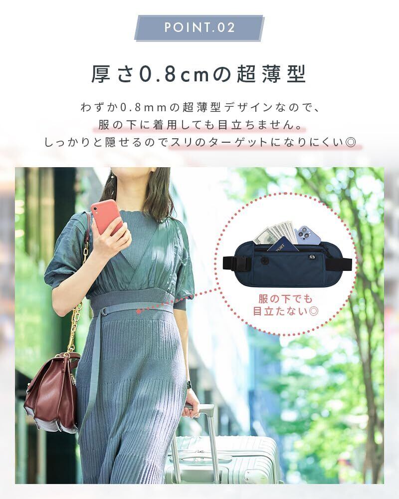 ●わずか0.8cmの超薄型デザインなので、服の下に着用しても目立ちません。しっかりと隠せるので、スリのターゲットになりにくい◎