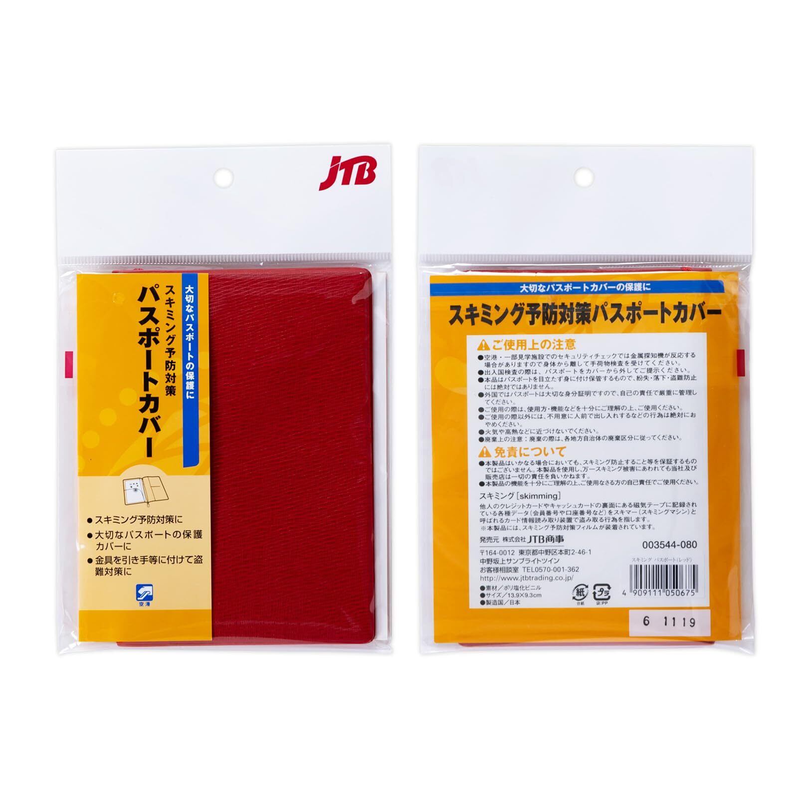 JTB商事 パスポートカバー スキミング 予防 対策 日本製 レッド 354402