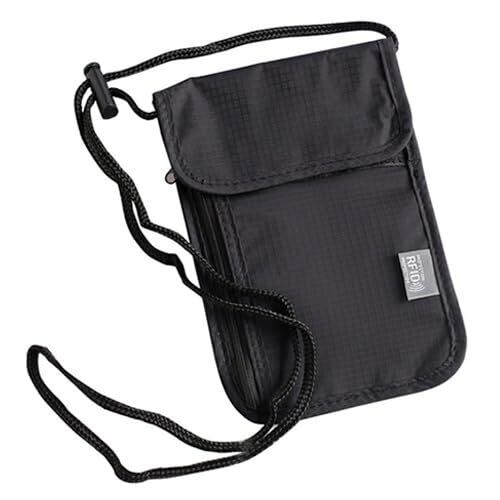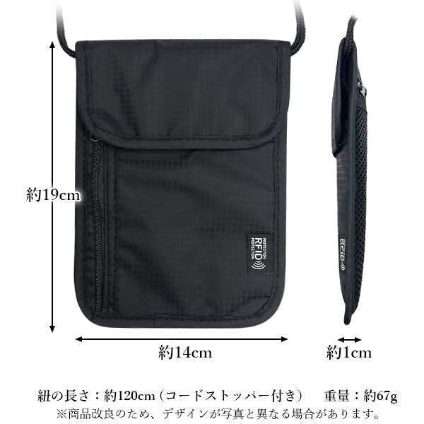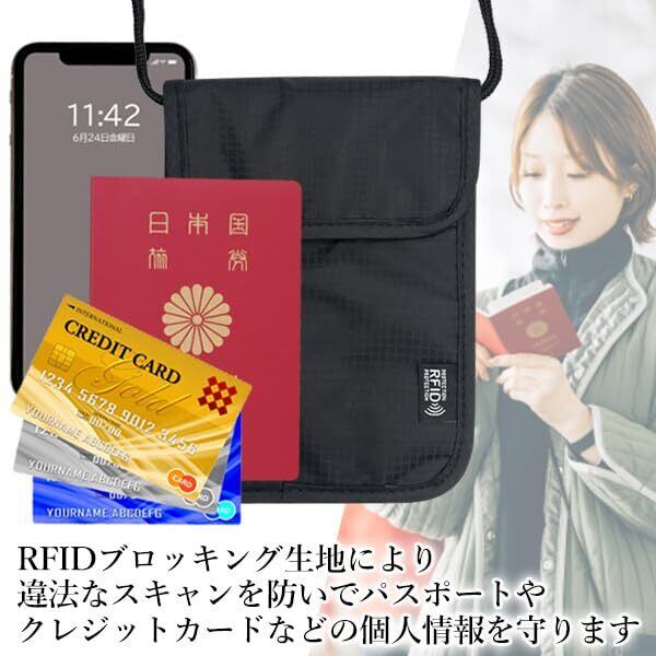 [RemarksJapan] パスポートケース 首下げ RFID スキミング防止 セキュリティポーチ パスポートバッグ トラベル ネックポーチ 超薄型 軽量 航空券 紙幣 カード スマホ 収納 多機能 海外旅行 貴重品入れ 男女兼用 ストラップ調節可 (Black)