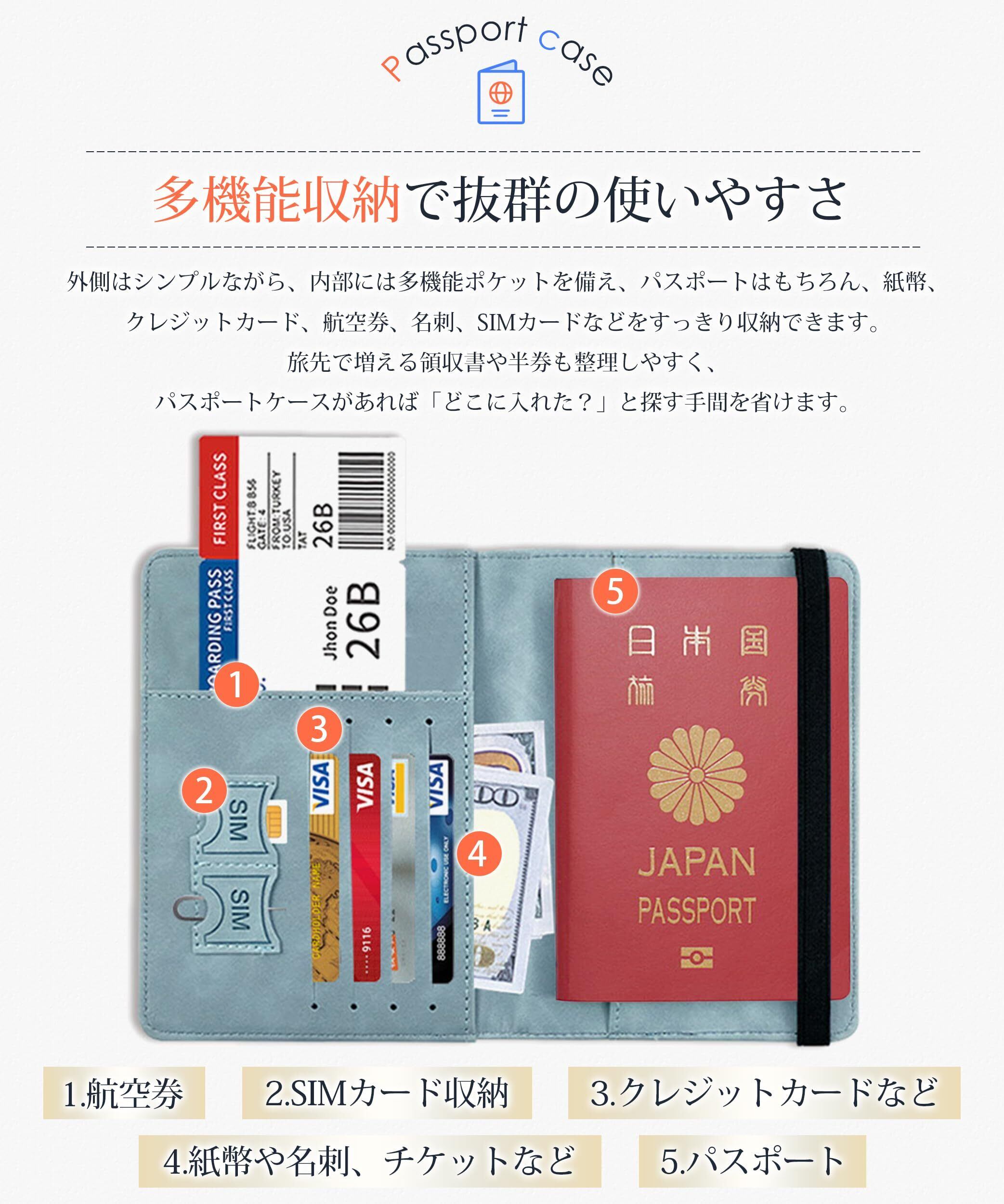 【高級PUレザーでしっかり保護】 パスポートケースは、手触りが良い高級PUレザーを採用しており、柔らかく耐久性に優れています。水や汚れに強い素材ため、日常のお手入れが簡単で、長持ちします。PUレザーの優れた耐久性と防水性により、パスポートをしっかり保護できます。また、ケースが開くのを防ぐゴムバンドが付いており、機能性とデザイン性を兼ね備えた実用的なパスポートケースです。