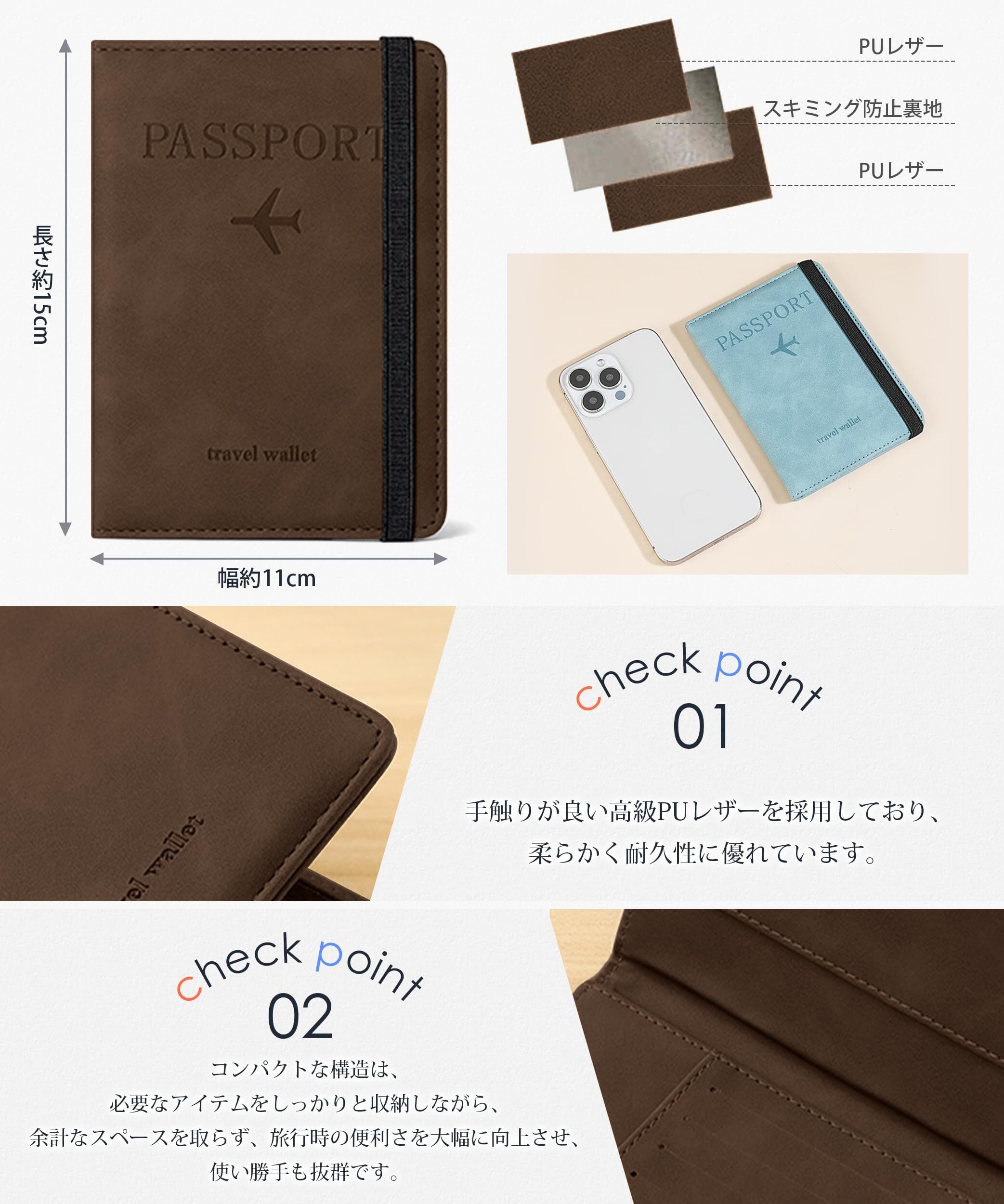 【軽量設計で持ち運び便利】 このパスポートケースは軽量設計で、折りたたみ時のサイズは幅約11cmx長さ約15cmx厚さ約1cmです。手提げバッグや深めのポケットにぴったり収まり、どこでも簡単に持ち運べます。パスポートケースのコンパクトな構造は、必要なアイテムをしっかりと収納しながら、余計なスペースを取らず、旅行時の便利さを大幅に向上させ、使い勝手も抜群です。