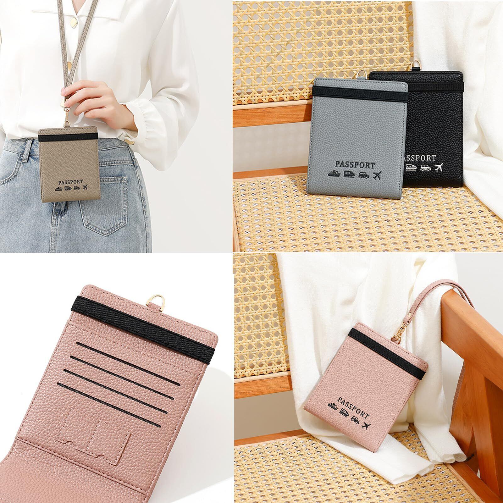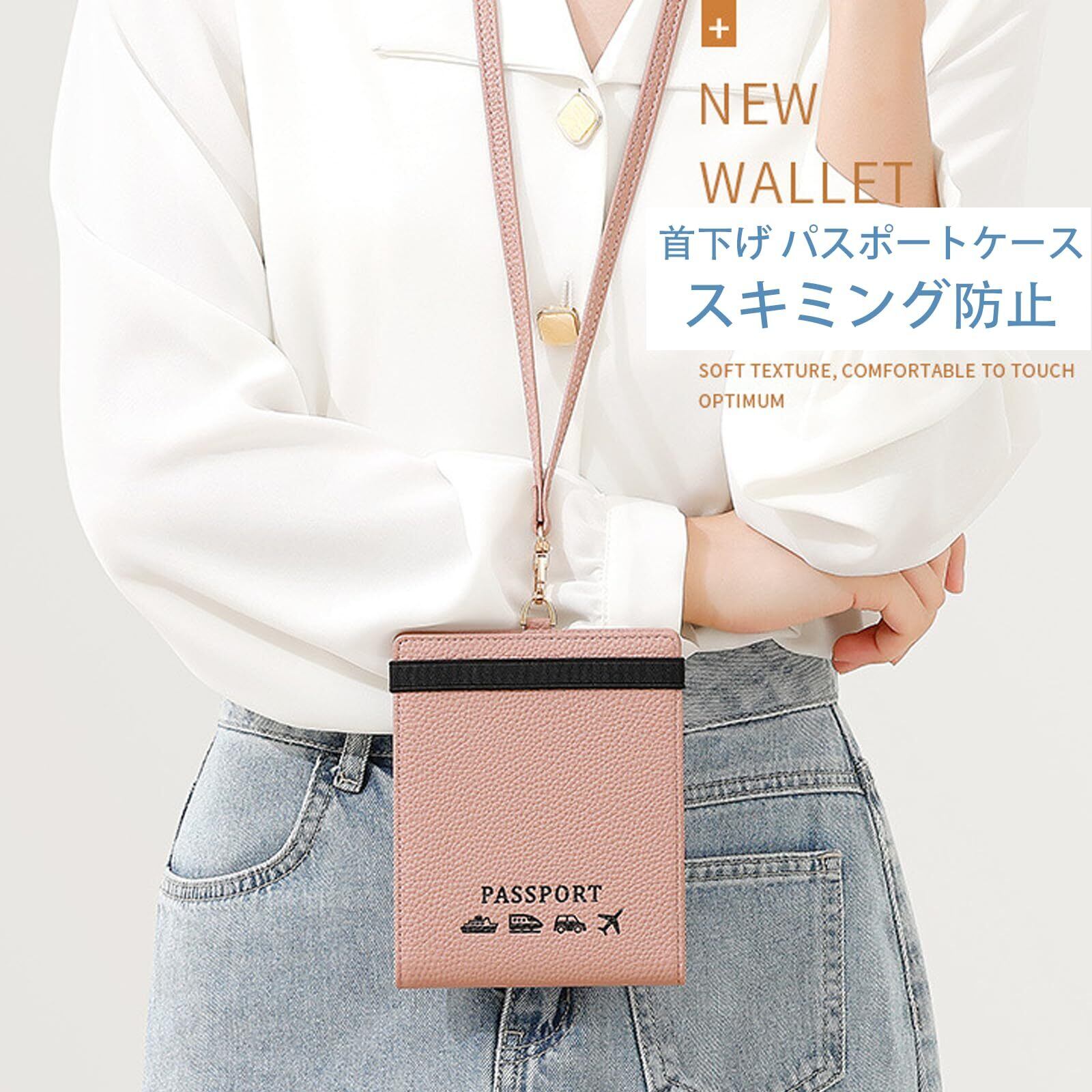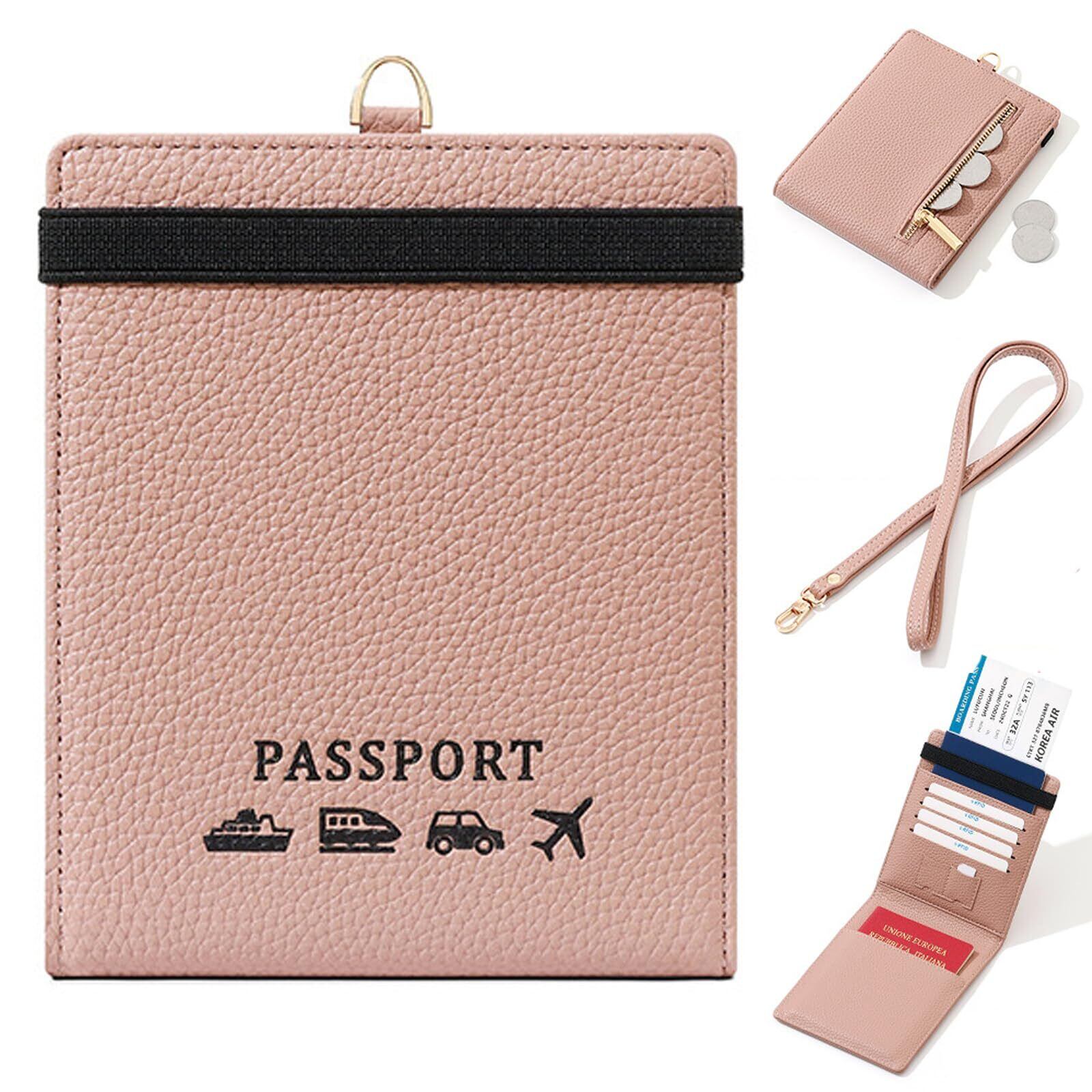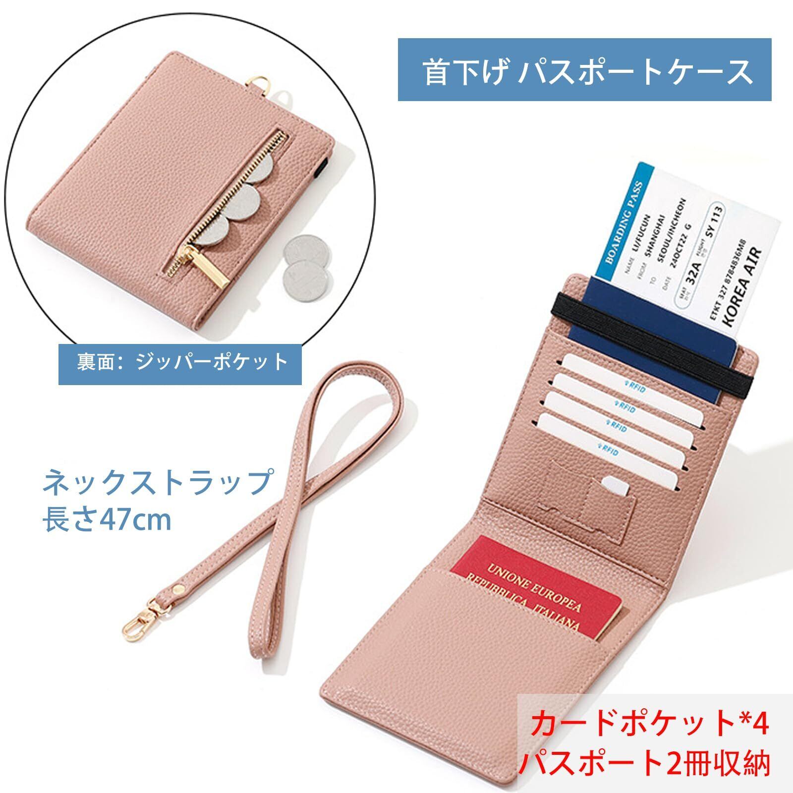 [RenLianyi] 首下げ パスポートケース スキミング防止 パスポート2冊収納 おしゃれ パスポートカバー レディース 可愛い 軽量 パスポート カードケース 4枚収納 高級PUレザー 海外旅行 贈り物 ピンク