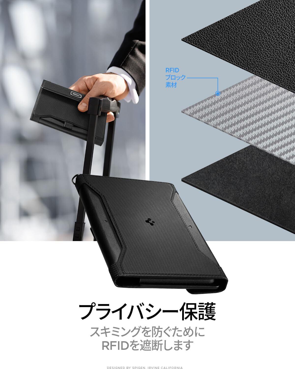[Spigen] パスポートケース ホルダー トラベルウォレット スキミング防止 安全な海外旅行用 高級PUレザーパスポートカバー 多機能収納ポケット 名刺 クレジットカード 航空券 エアチケット AFA05538 (ブラック)