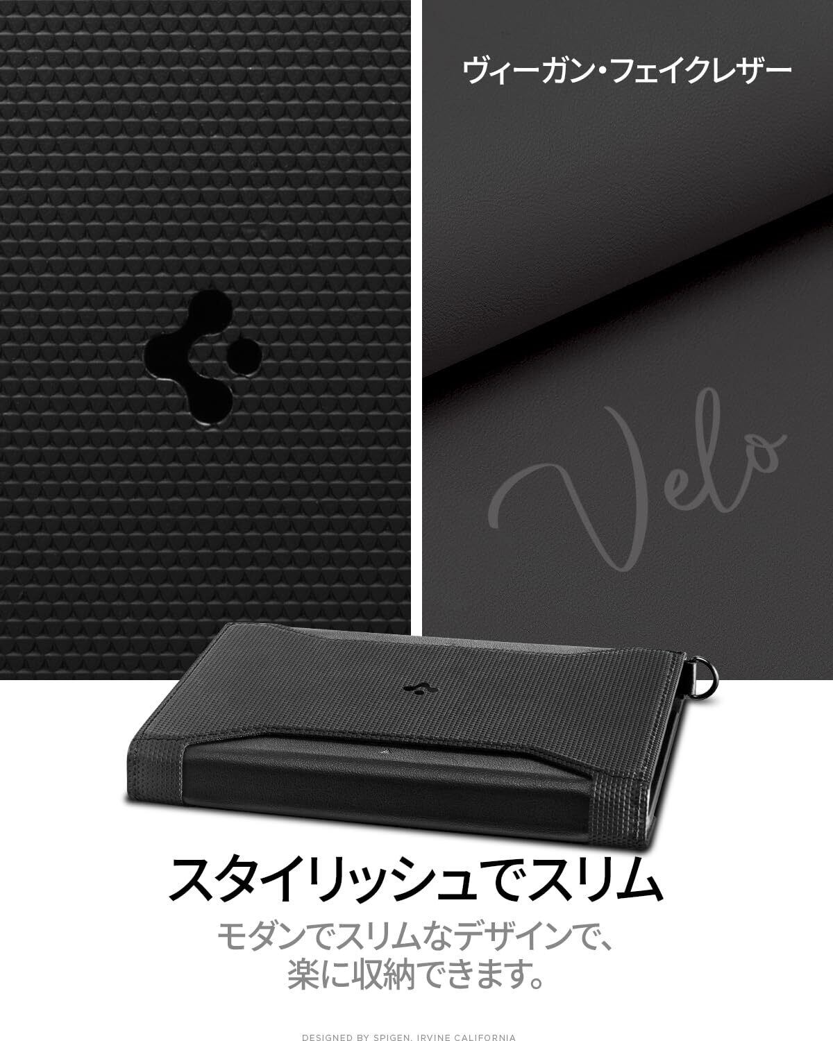 外側はプレミアム ベロ ビーガン レザー製で、内側は柔らかい生地で裏打ちされています。