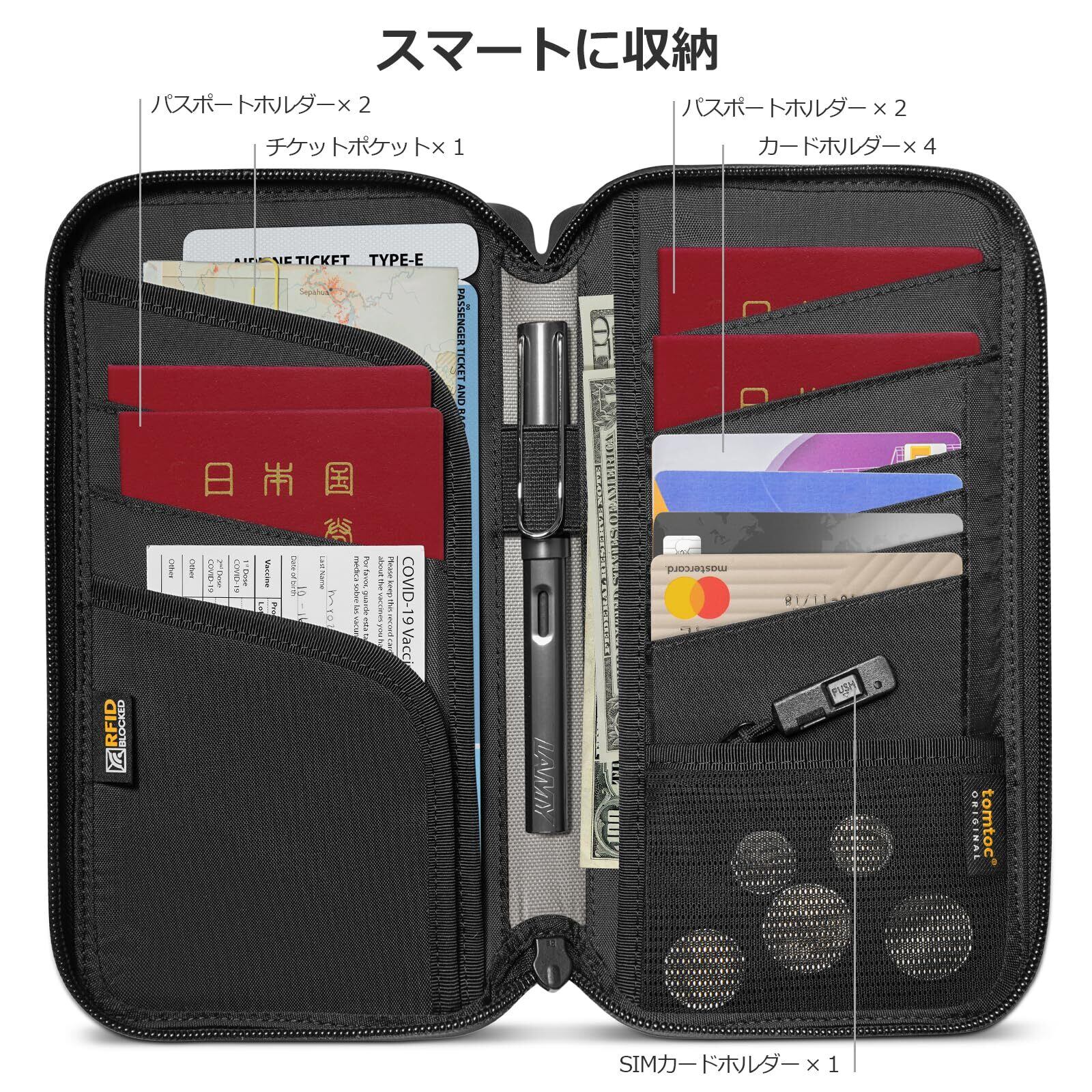 [tomtoc] パスポートケース スキミング防止 パスポートカバー 4冊収納 大容量 カードホルダー パスポートポーチ 撥水 海外出張 家族旅行