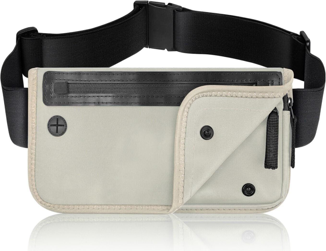 【在庫処分】[VIVALD] 【薄型デザイン×大容量】 服の下に隠せる セキュリティポーチ 薄型 海外旅行 スキミング防止 パスポート シークレットポーチ スリ防止 バッグ (ライトベージュ) | 無意味ステッカー