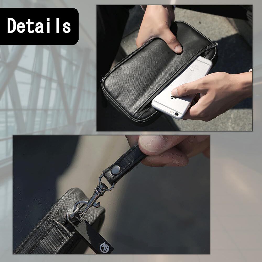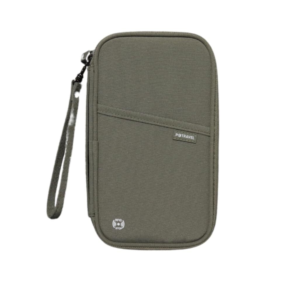 [現場専科] パスポートケース スキミング防止 防水 ストラップ付 財布 兼用 (モスグレー)