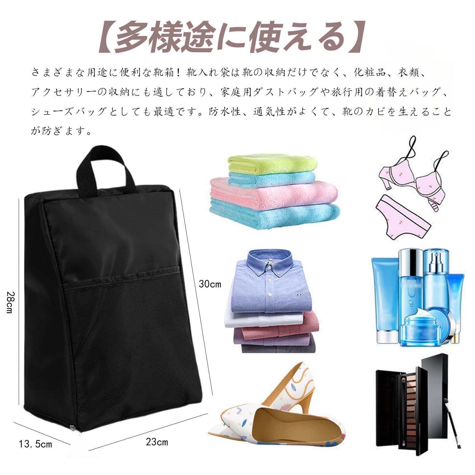 【多様途に使える】さまざまな用途に便利な靴箱!靴入れ袋は靴の収納だけでなく、化粧品、衣類、アクセサリーの収納にも適しており、家庭用ダストバッグや旅行用の着替えバッグ、シューズバッグとしても最適です。防水性、通気性がよくて、靴のカビを生えることが防ぎます。機能的なデザイン、上品な色合いで、年齢・性別問わず、長くご愛用いただけます。