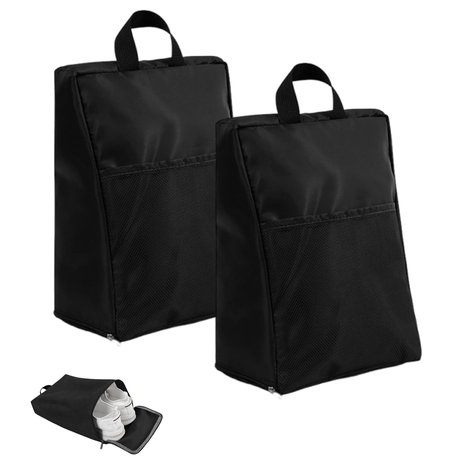 PRETOLE シューズケース シューズバッグ 2個入り 靴袋 靴入れ 上履き入れ 防水防臭 防汚防塵 超軽量 衣類入れ ポケット付き 持ち運び便利 スポーツ ゴルフ サッカー アウトドア 体育館 水泳 収納袋 男女兼用 旅行 出張 学校 家庭 ブラック
