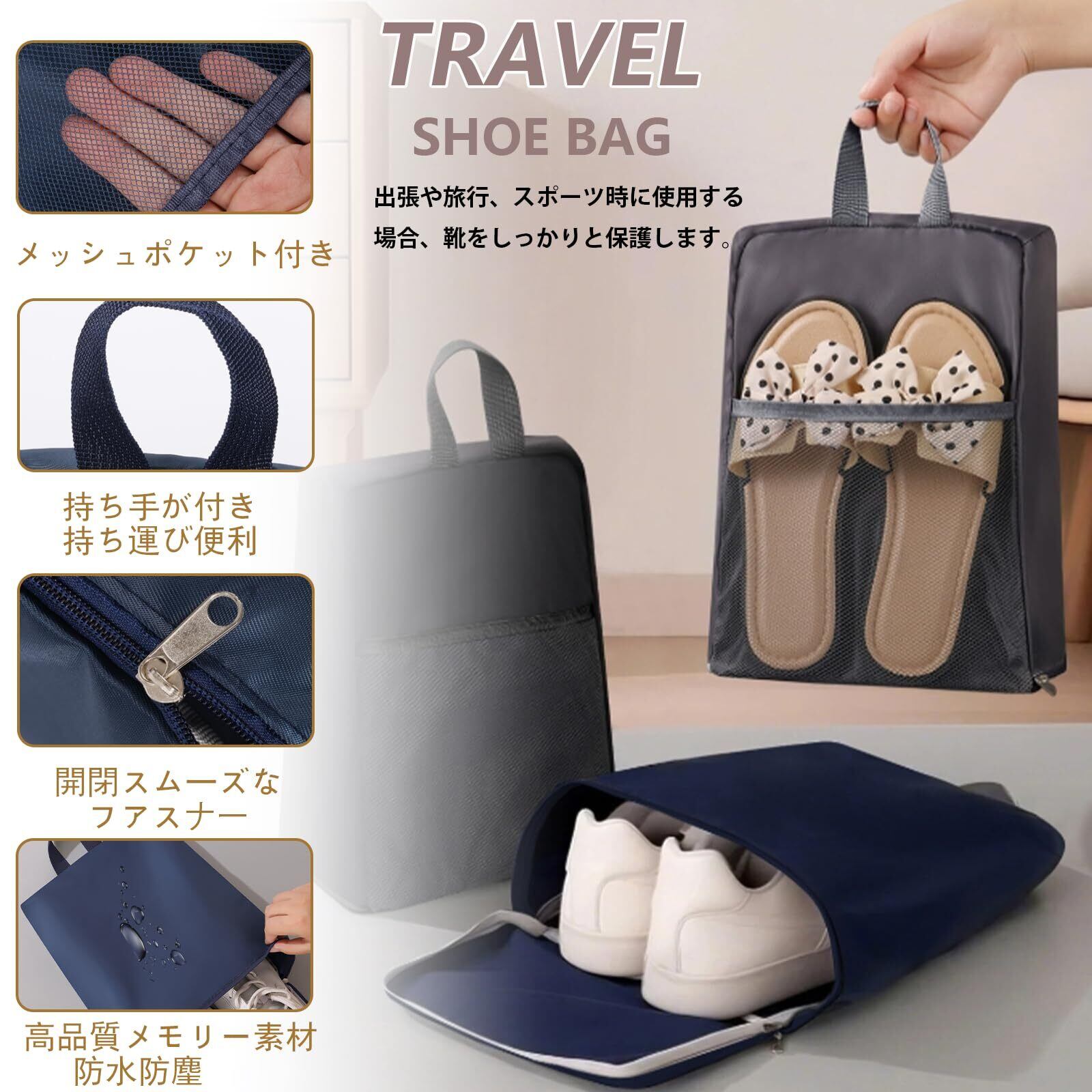 【防水防塵】高品質のT400ファイバー材料で作られたこのシューズケースは、滑らかな肌触りで高級感が溢れます。耐久性が優秀で、防水性と防塵性を兼ね備え、水で洗えばいつでも清潔に保つことができます。