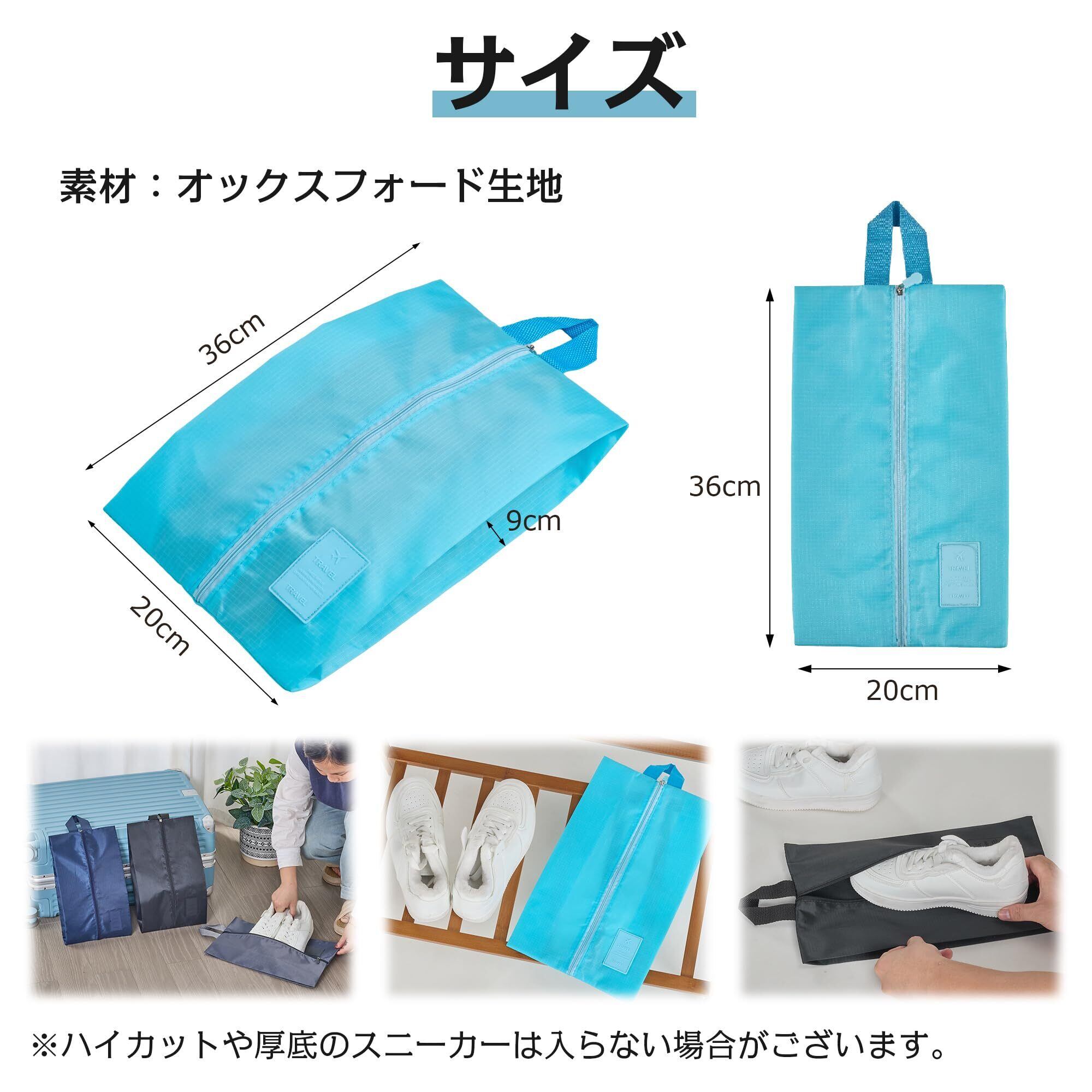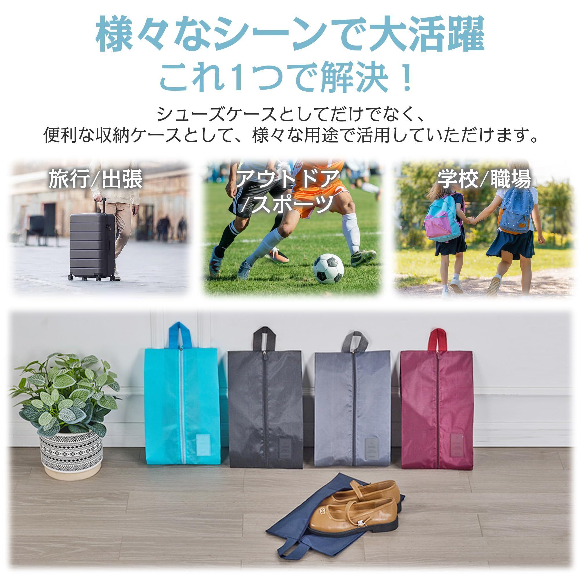 【大容量&多用途シューズケース – あらゆる靴をスッキリ収納!】スニーカー、革靴、パンプス、サンダル、スリッパなど、さまざまな種類の靴を収納できる大容量シューズケースです。シューズだけでなく、小物や衣類、洗面用具などを入れるマルチケースとしても活躍します。 【防水加工&耐久性抜群 – 靴をしっかり保護!】高品質の防水素材(オックスフォードクロス)を採用し、靴を水や汚れから守ります。旅行やジム、スポーツ後の濡れた靴や汗をかいた靴も、そのまま収納可能。丈夫な生地なので破れにくく、長期間使用できます。さらに、通気性の良い設計で、靴の蒸れや臭いを軽減します。