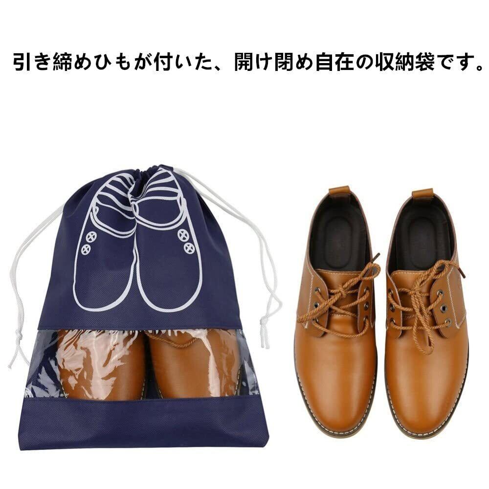 【素材】不織布。加厚耐久性シューズバッグで、防水、防塵、汚れ防止、軽くて柔らかい。軽量でシンプルなデザインでかさばらないので使いやすい 使わない時には折りたためるので、コンパクトに収納できる。
