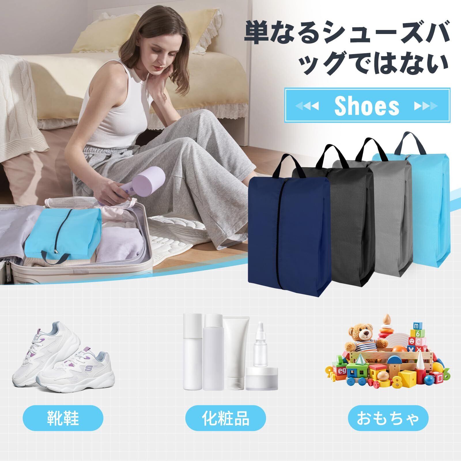 旅行用シューズバッグ - 2個パック シューズトラベルバッグ パッキング用 特大 防水 ポータブル トラベルシューズバッグ ジッパー付き 旅行の必需品 女性と男性用 (ブルー)