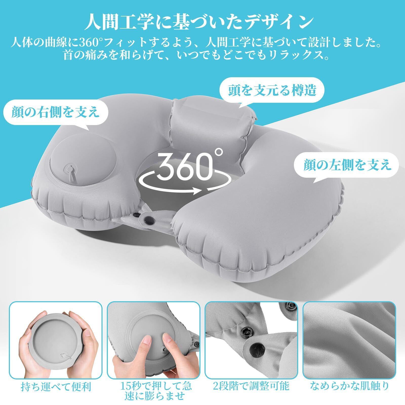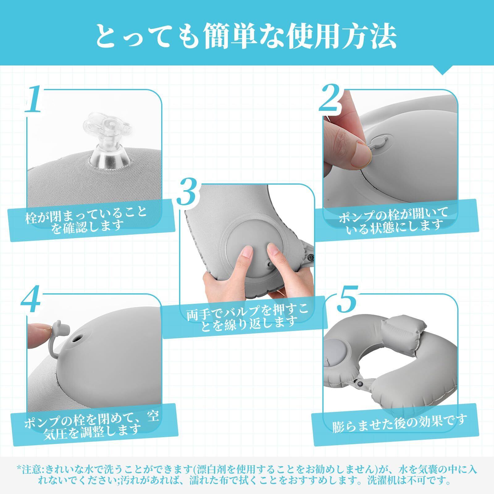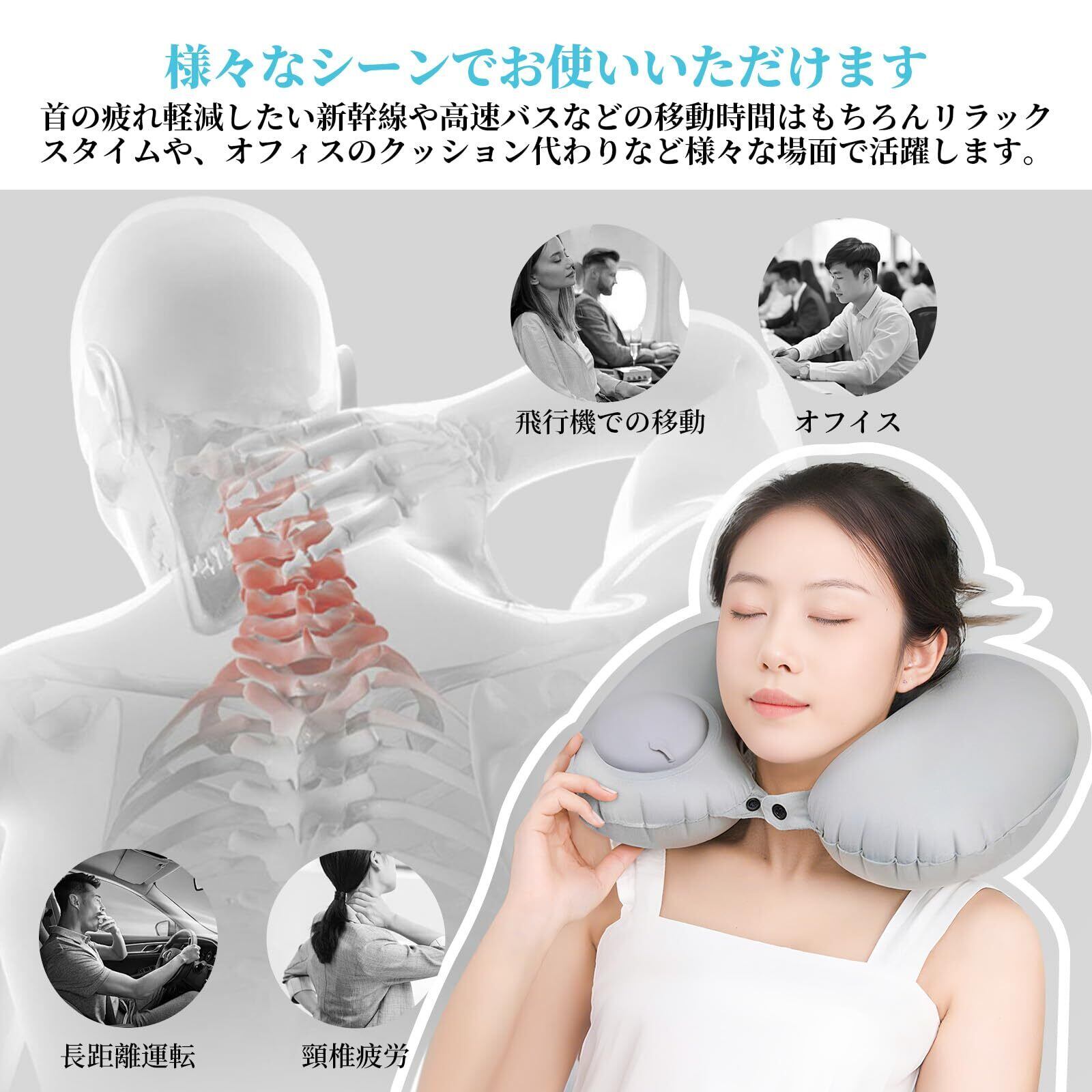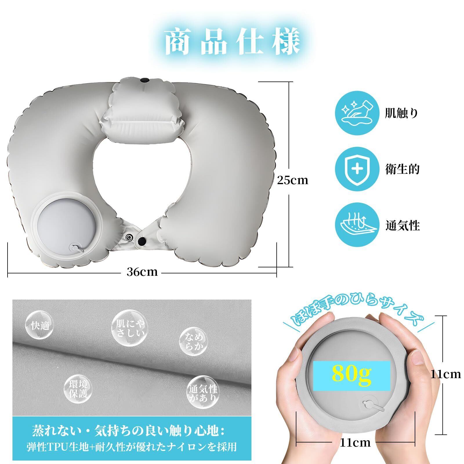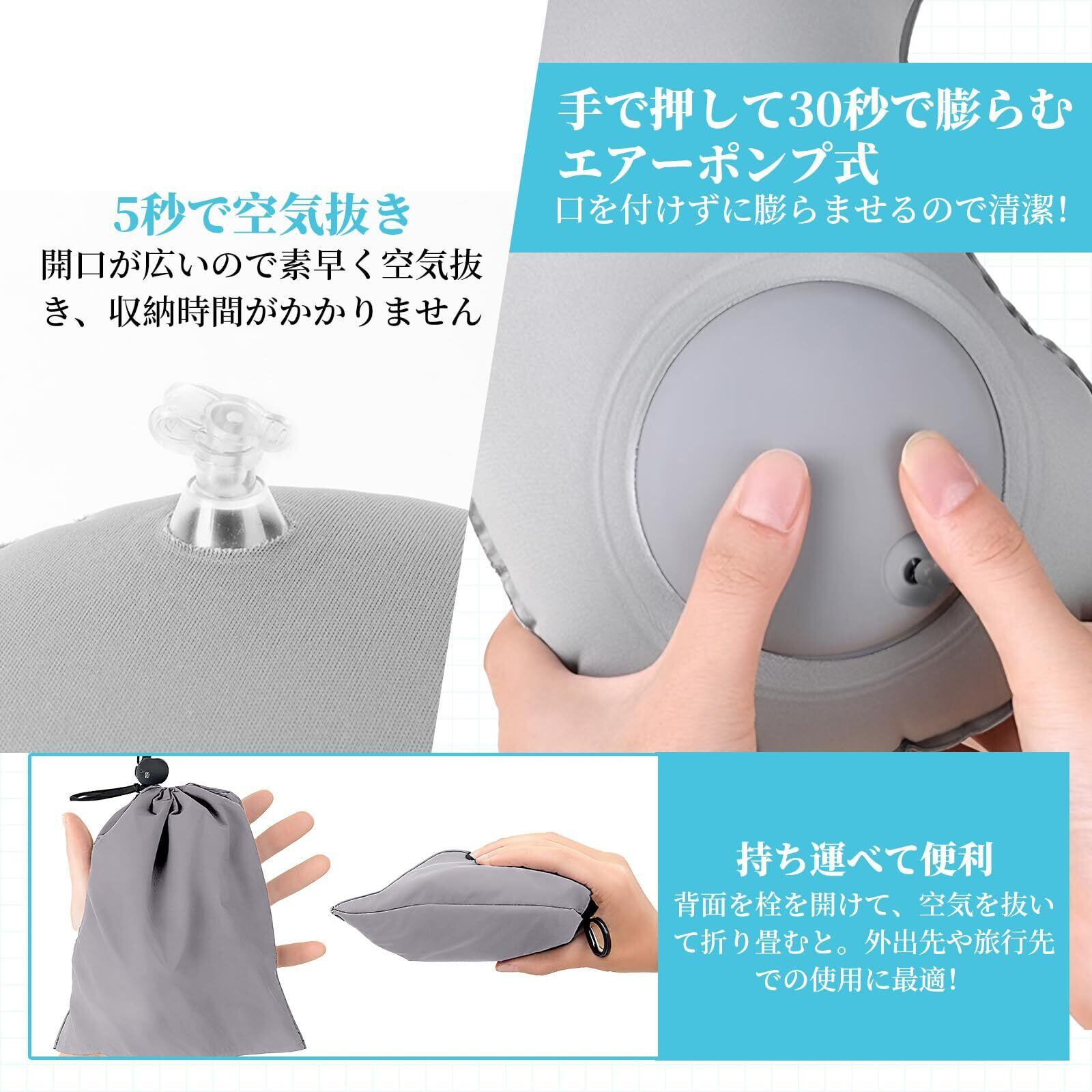 【超軽量 携帯枕】ネックピロー U型まくら ポンプ式 首枕 旅行用 空気枕 持ち運び便利 エアーピロー ネックピロー 手動プレス式膨らませる ねっくぴロー 飛行機 旅行枕 収納ポーチ付きクッション コンパクト 車 夜行深夜バス 新幹線 ソファ