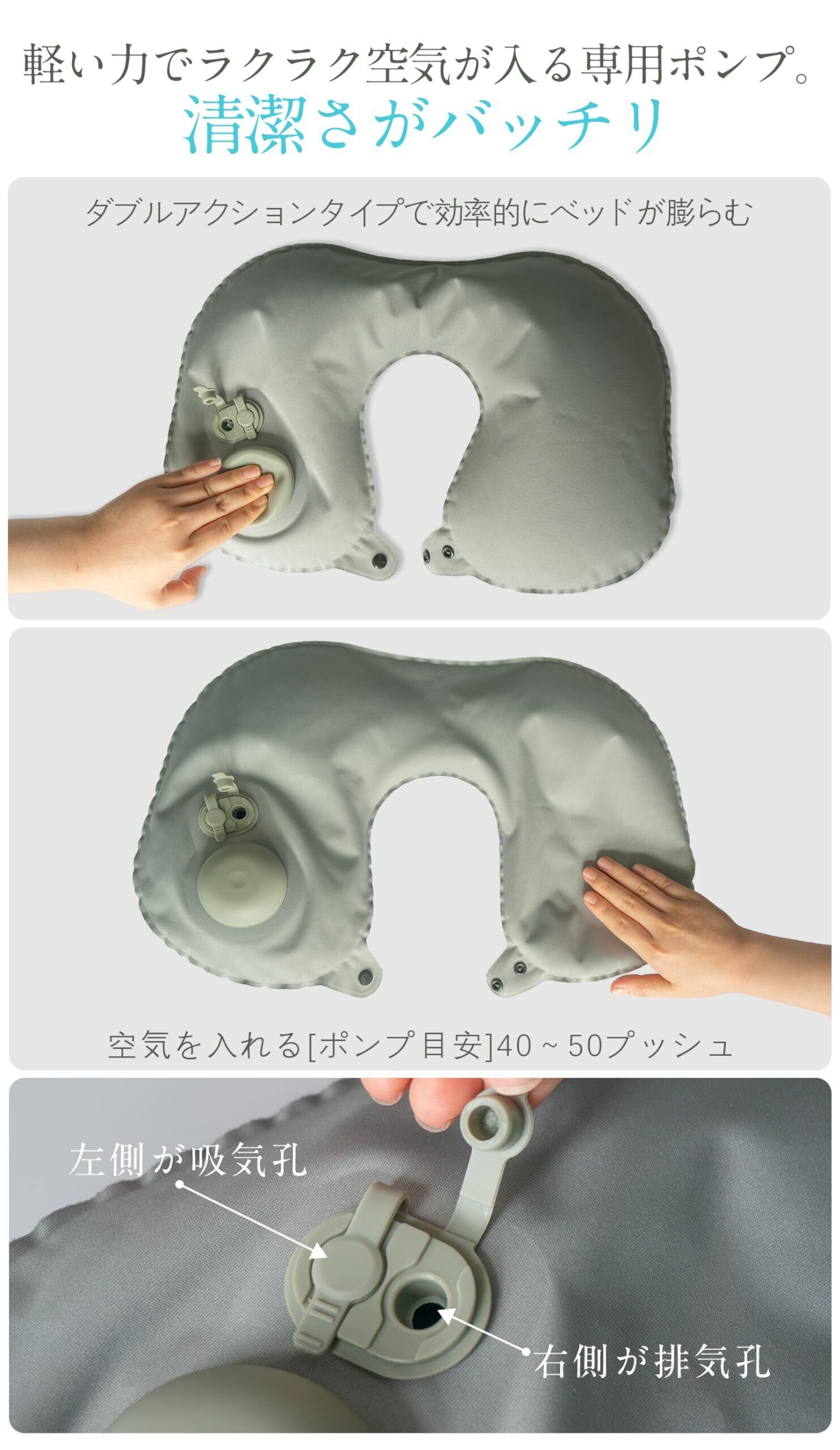 【ポンプ内蔵式】内蔵ポンプを押すだけで簡単に空気が入ります。口を付ける必要がないので、清潔に使用できます。