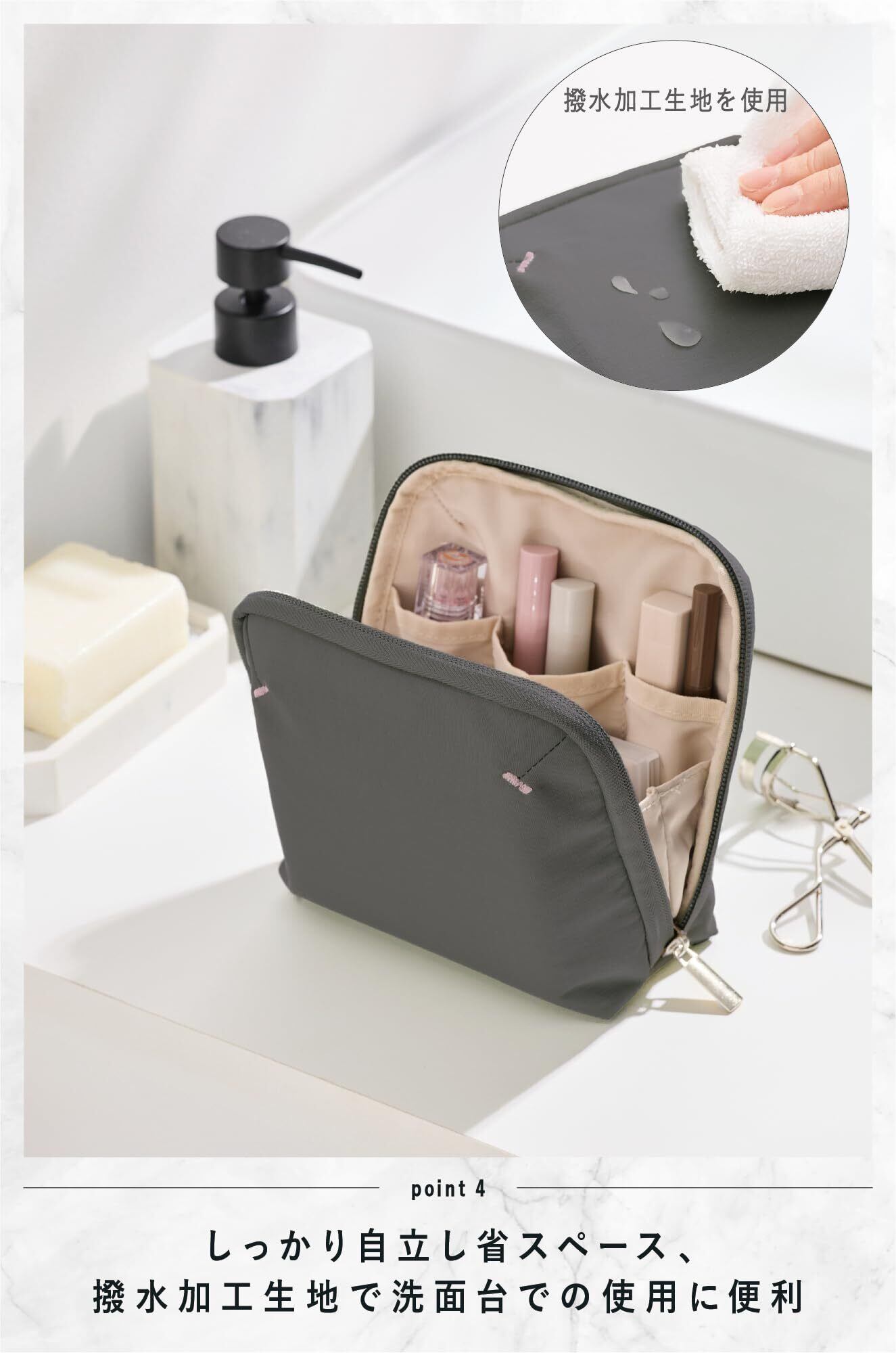 【限定】コクヨ 化粧ポーチ メイクポーチ コスメポーチ 小物入れ ポーチ レディース 立てたまま収納可能 自立 自然に大きく開く 撥水加工 (チャコールグレー)