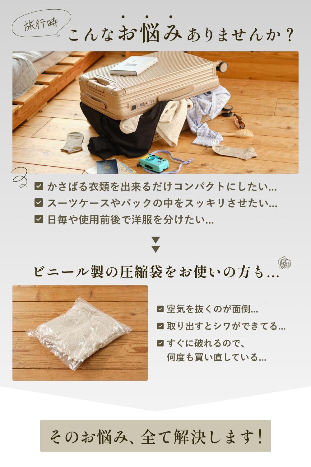 【カバンやスーツケースの中がスッキリ!】 衣類が整理されるので、他の荷物も入りやすくなります。「荷物が整理できて気持ちいい」「バッグの空きスペースに、お土産を入れることができた!」など嬉しいお声をいただいております。