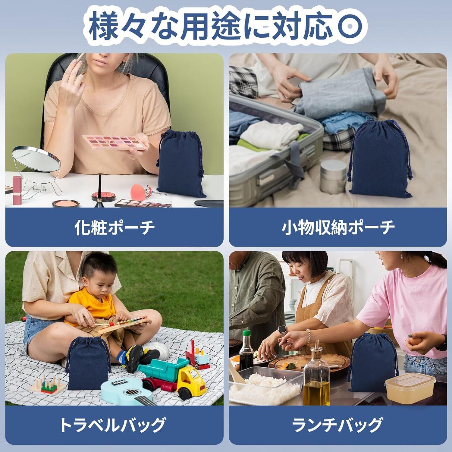 【数量限定】巾着袋 2枚セット 無地 棉布 6色 キャンバス製 お洒落 かわいい インナーバッグ 収納 旅行 着替え袋 巾着 収納ポーチ アクセサリーポーチ 小物入れ (ネイビーブルー, 25*32cm) | 無意味ステッカー