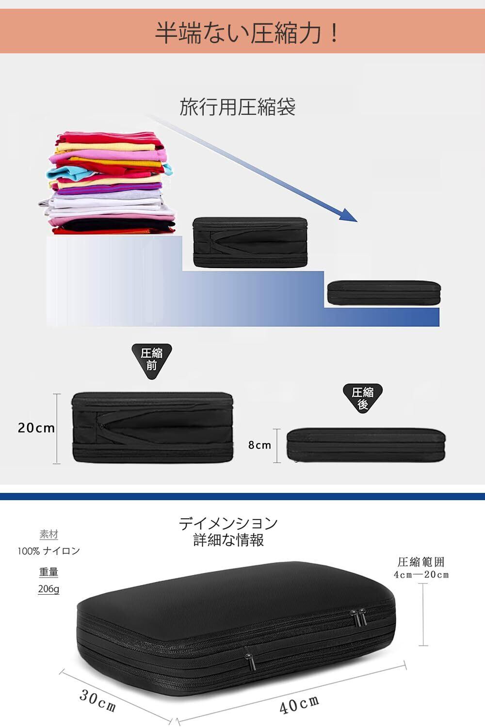 【ファスナーで簡単圧縮】 通常の圧縮袋とちがって、圧縮用の吸引機などがいらないため、その機能というのが、ファスナーにを閉めるだけでOKの超カンタン圧縮機能!見た感じは小さい圧縮バッグですが、実際は多くの衣類が入ります。旅行、出張やホテル泊などに最適な収納バッグです。【保証】何か問題がございましたら、お気軽にメールよりご連絡ください、弊社の営業担当は至急に対応いたします。
