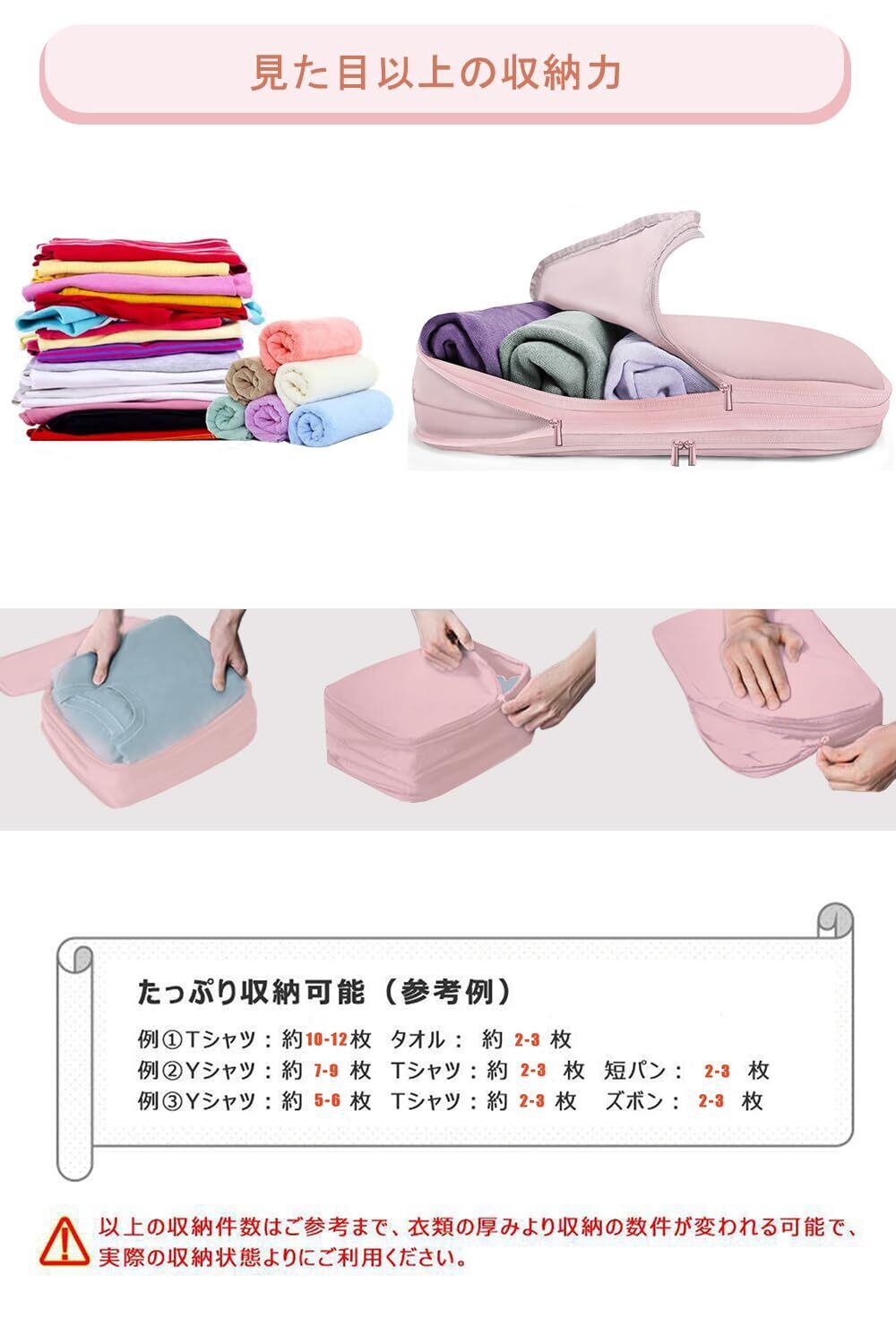 圧縮バッグ 便利旅行圧縮バッグ 圧縮ポーチ 【2025新登場 】 ファスナー圧縮 大容量 トラベルポーチ セット 衣類圧縮 衣類仕分け 出張 多機能 簡単圧縮 軽量 旅行 便利グッズ 旅行用圧縮袋 (ピンク, L)