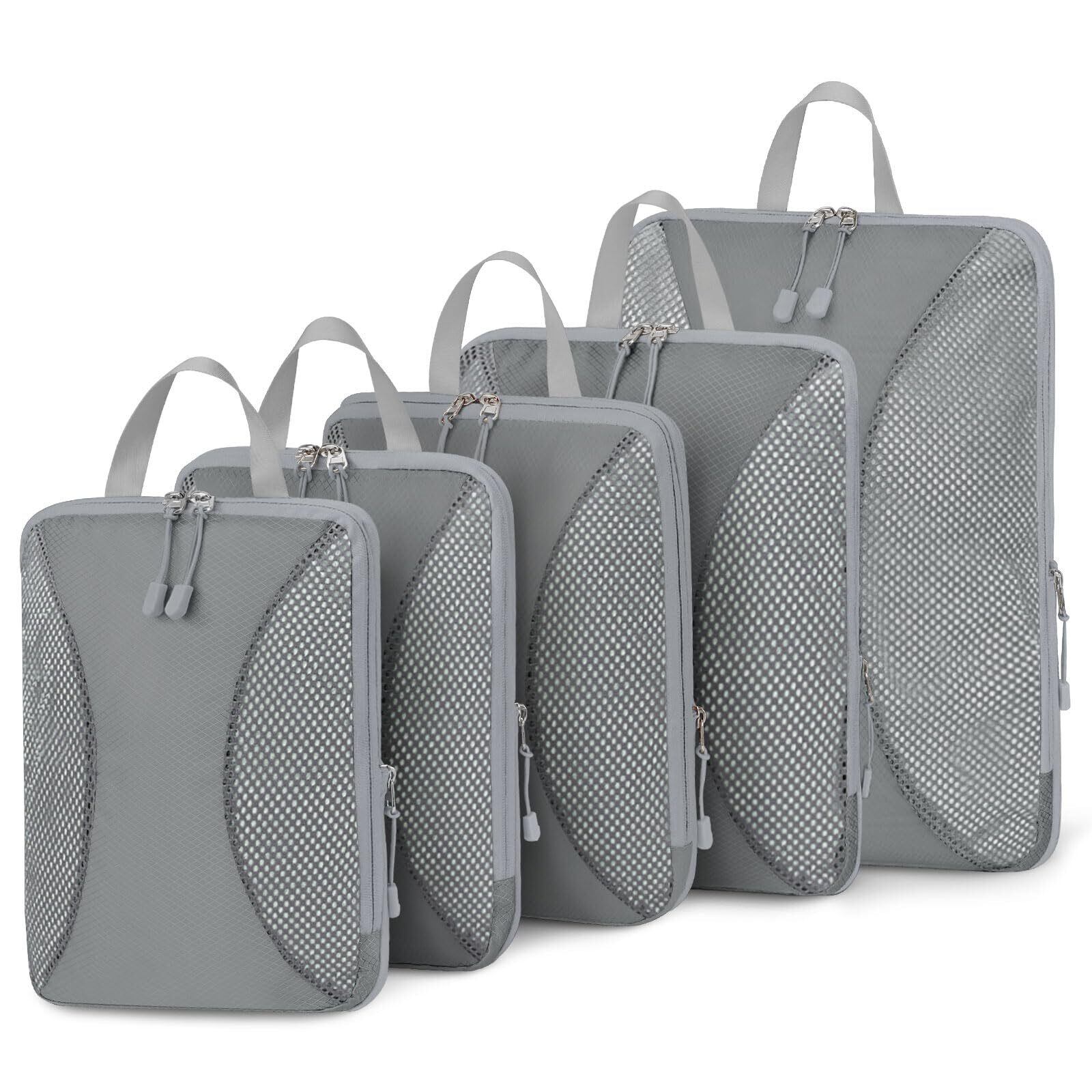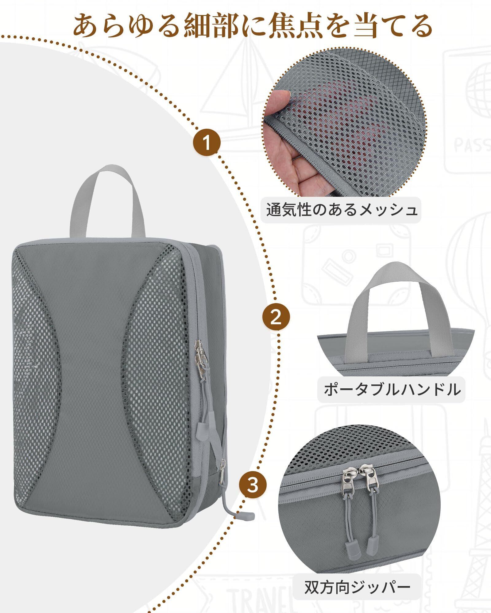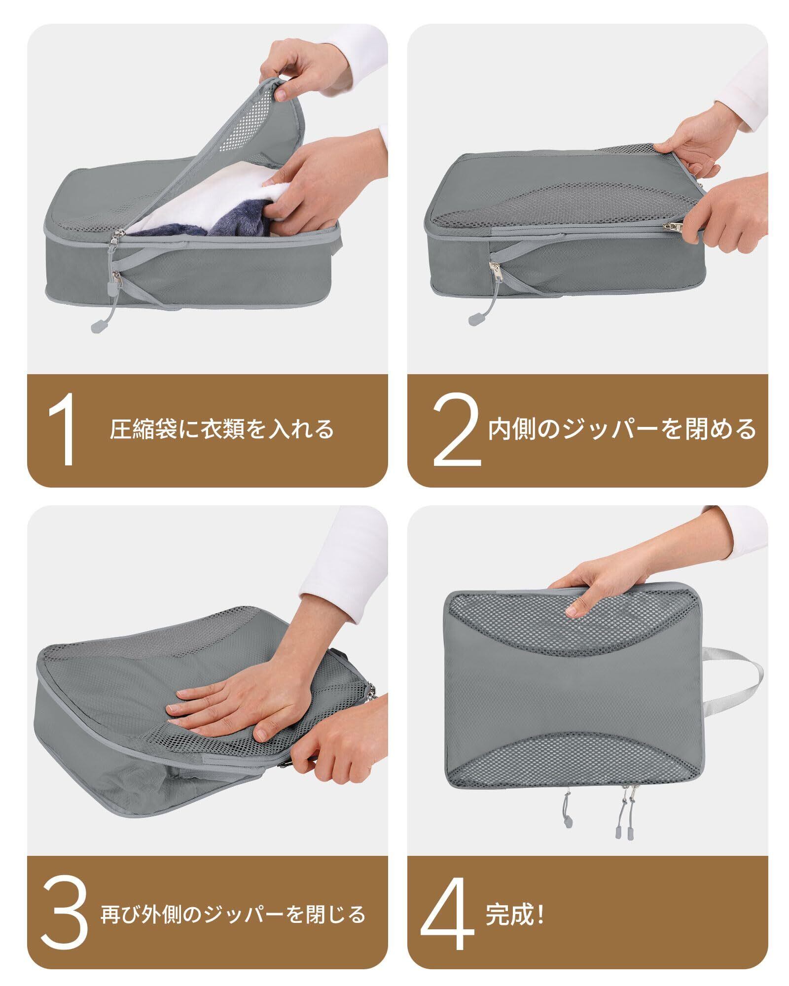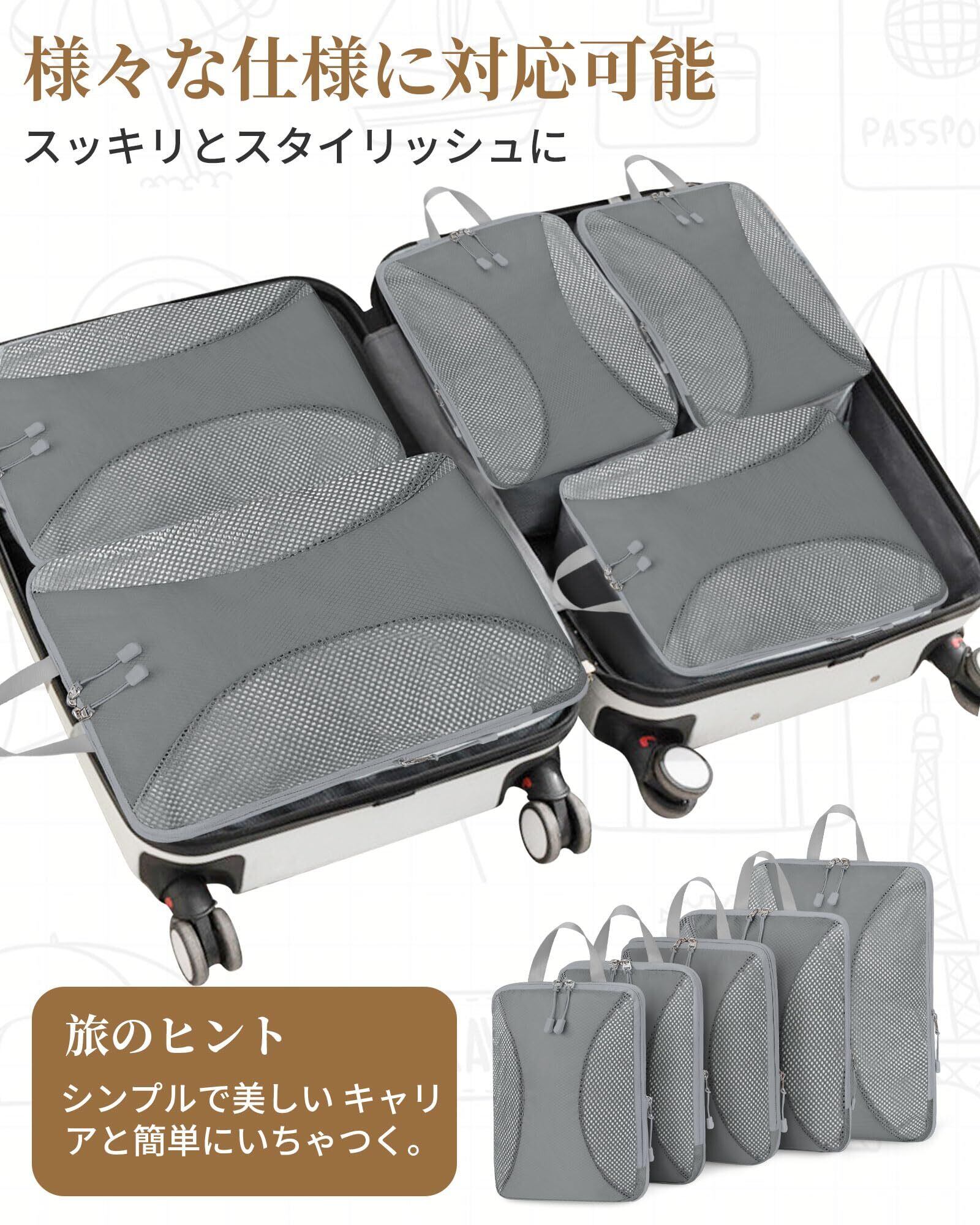 トラベルポーチ 圧縮 5点セット 旅行用圧縮袋 旅行 衣類収納 スペース節約 スーツケース 衣類仕分け収納 出張 整理 便利グッズ 軽量 大容量 旅行収納ポーチ 旅行用ポーチ 4つのサイズ(グレー)