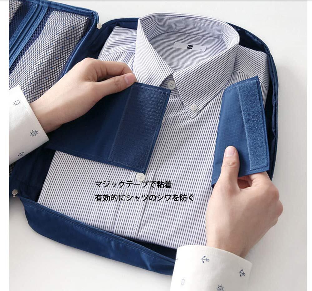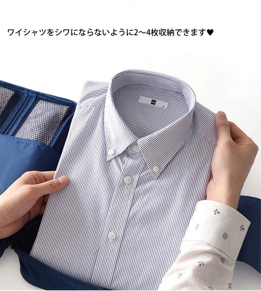 HelloGO ワイシャツケース 衣類収納ケース 収納バッグ 小物入れ コンパクト 防水 ビジネス 旅行 出張 2~4枚収納 折り畳み板付き(ネイビー)