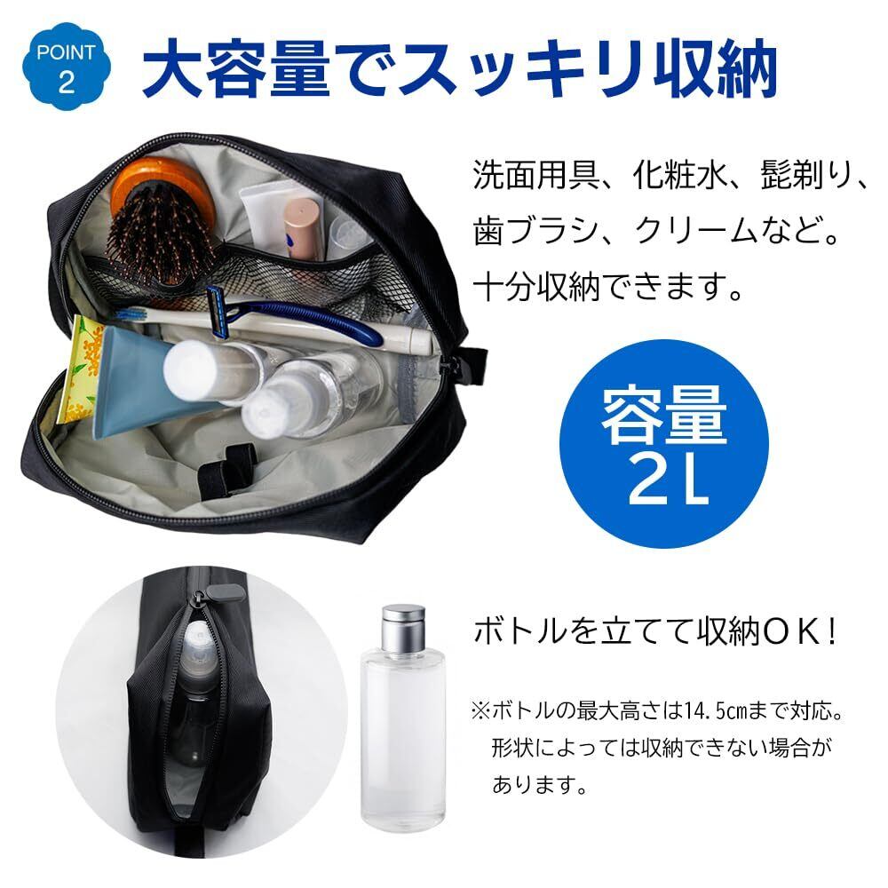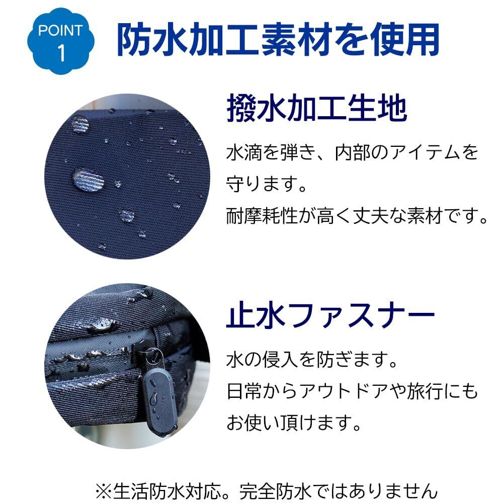 【防水&耐久性】防水ナイロン素材、止水ファスナーを採用。高品質な防水ナイロン生地が水滴を弾き、洗面所やアウトドアでも安心。止水ファスナーが水の侵入を防ぎ、大切なアイテムを守ります。※完全防水ではありません、生活防水に対応